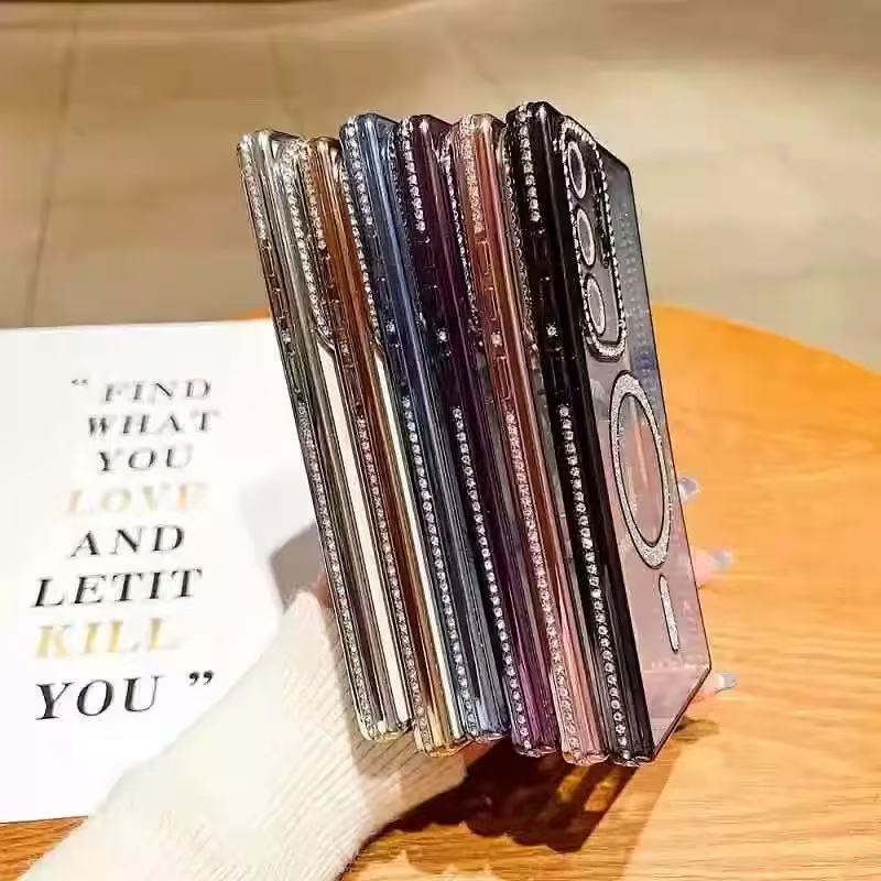 삼성 S25 플래시 다이아몬드 자석 휴대폰 케이스 A17 크리스탈 A56 글리터 A35 투명 A14 낙하 방지 보호 케이스에 적합