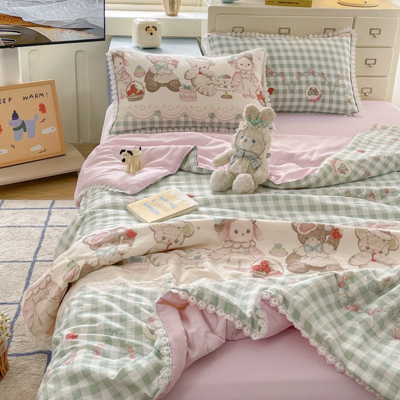 클래스 A 인쇄 된 로리타 여름 이불 소녀 하트 워시 코튼 레이스 피부 친화적 인 소프트 싱글 더블 에어컨 퀼트