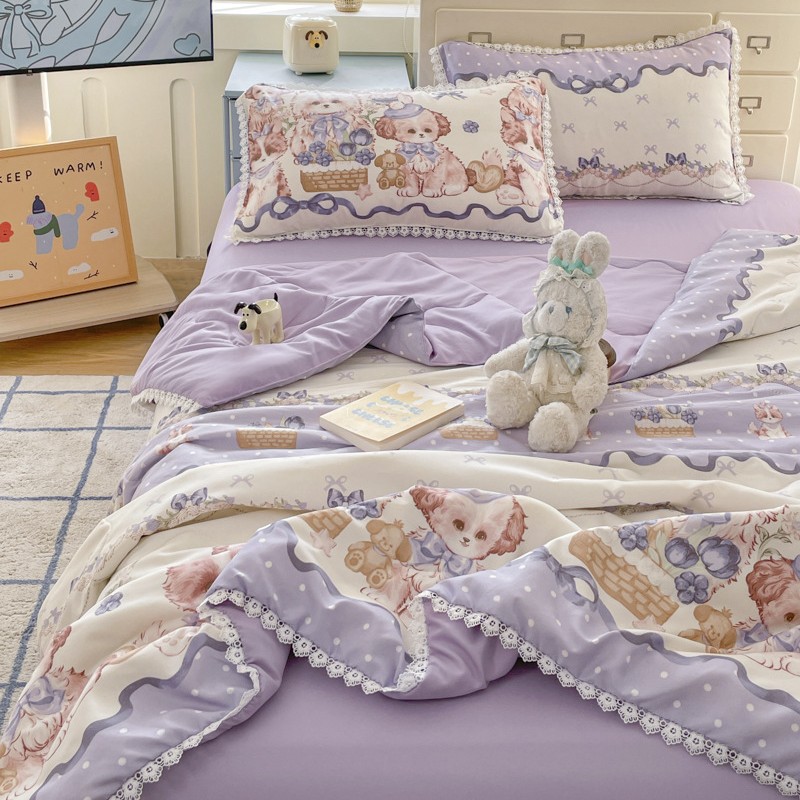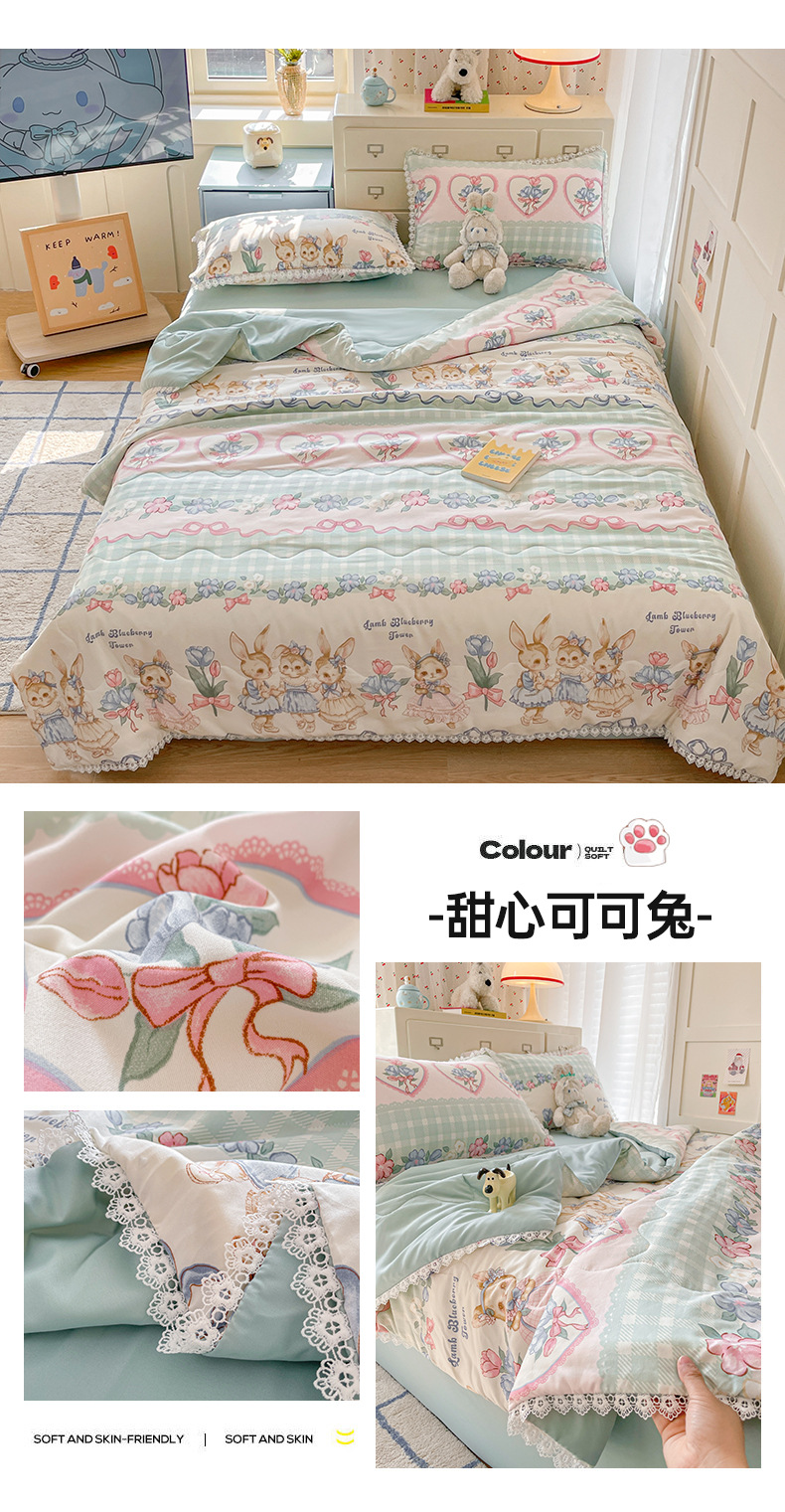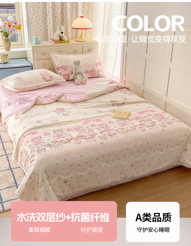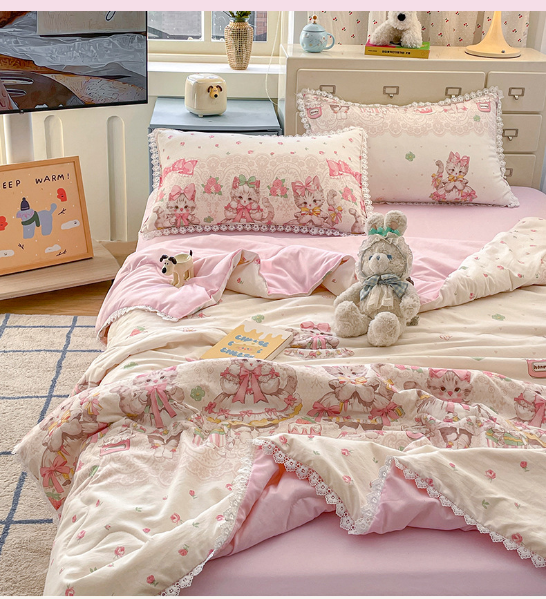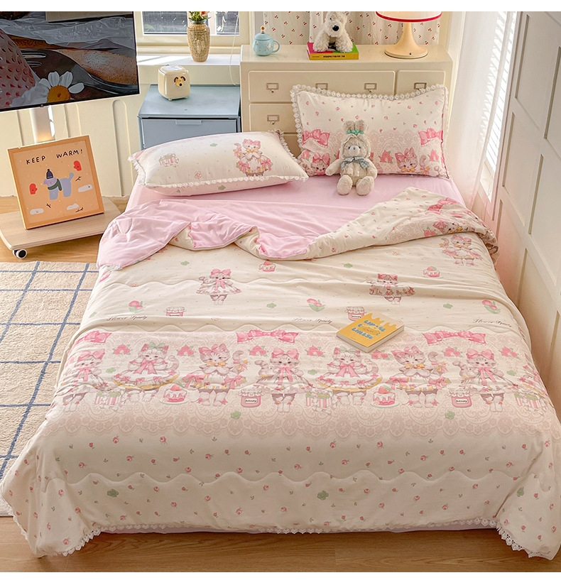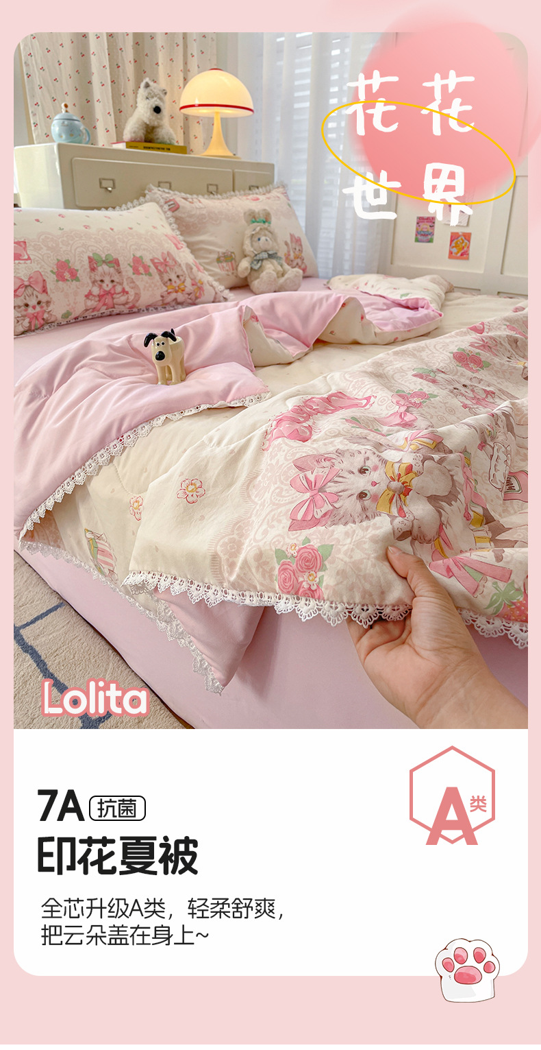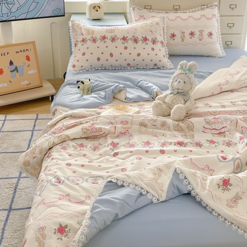 클래스 A 인쇄 된 로리타 여름 이불 소녀 하트 워시 코튼 레이스 피부 친화적 인 소프트 싱글 더블 에어컨 퀼트스토어 가기