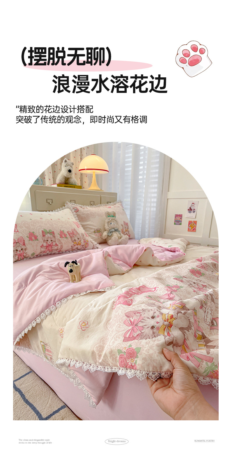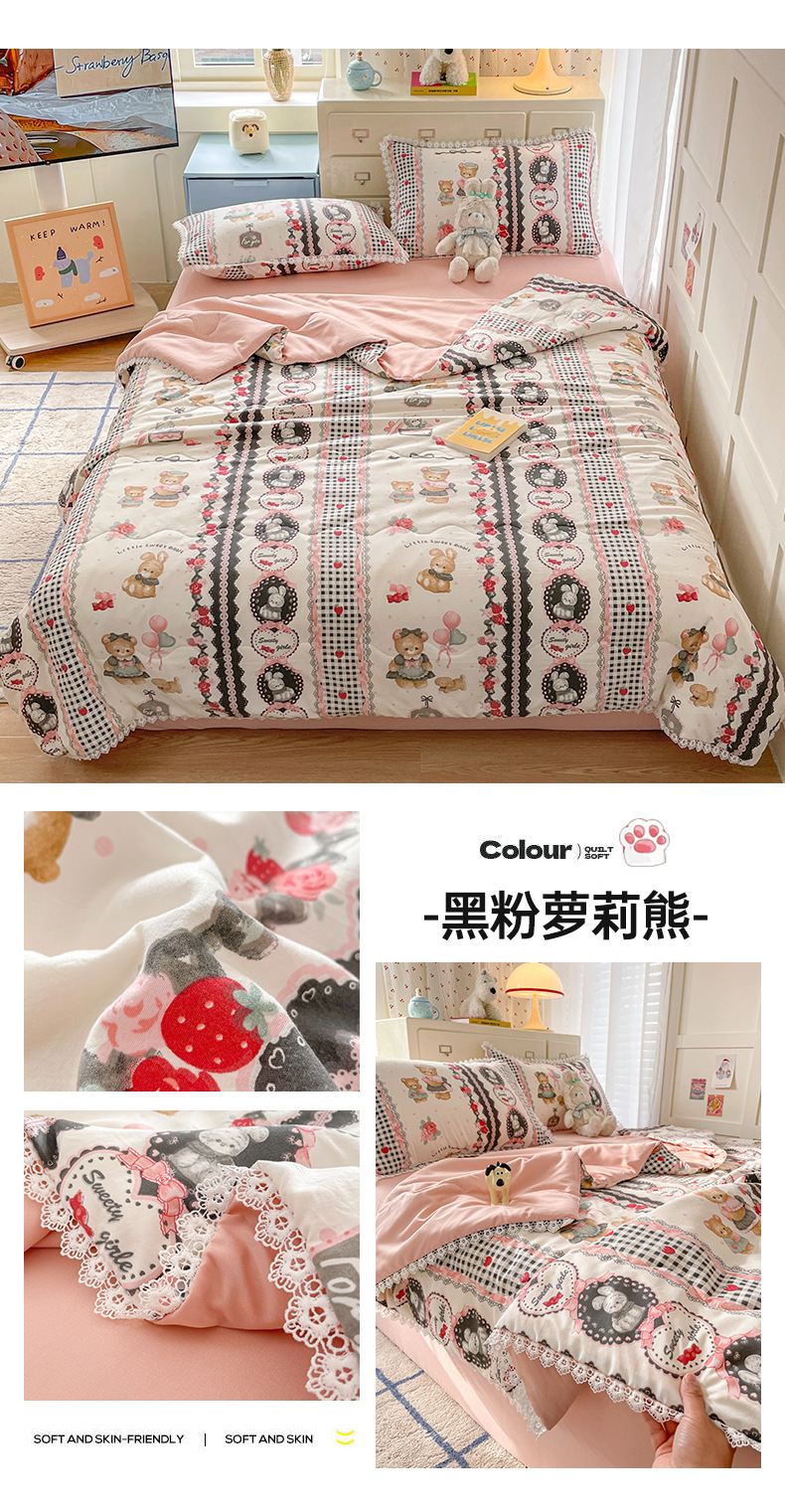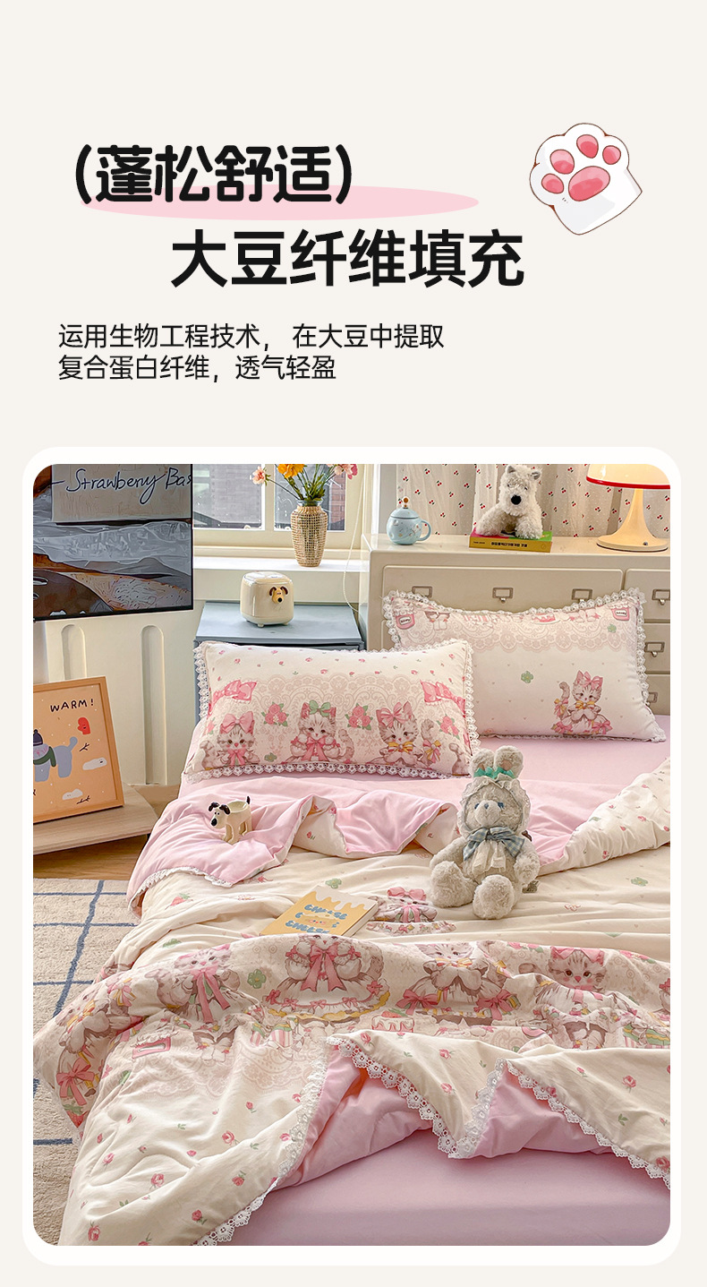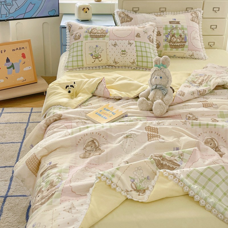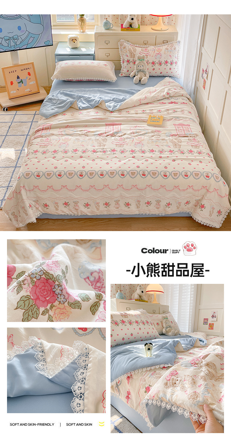 클래스 A 인쇄 된 로리타 여름 이불 소녀 하트 워시 코튼 레이스 피부 친화적 인 소프트 싱글 더블 에어컨 퀼트스토어 가기
