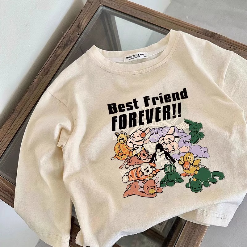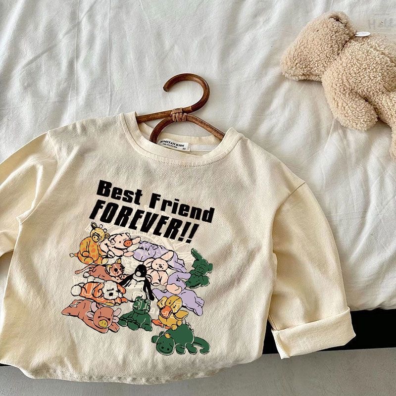 2024 봄과 가을 새로운 소년과 소녀 아기 외국 스타일 만화 긴 소매 한국 스타일 아기 티셔츠베이스 셔츠 트렌드스토어 가기