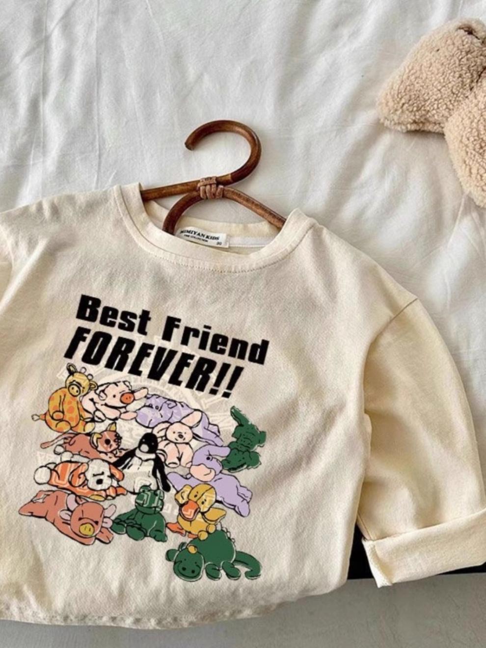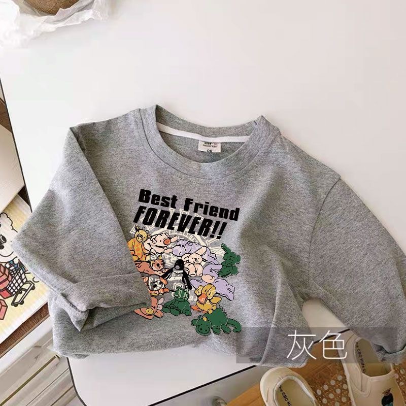 2024 봄과 가을 새로운 소년과 소녀 아기 외국 스타일 만화 긴 소매 한국 스타일 아기 티셔츠베이스 셔츠 트렌드