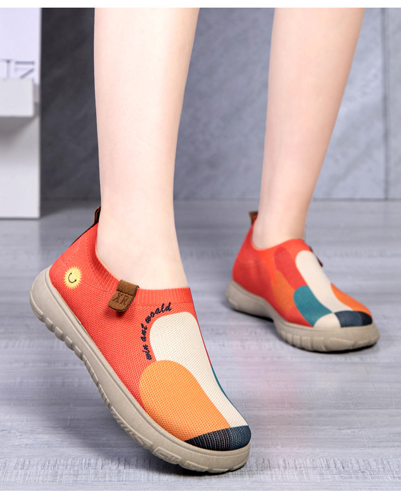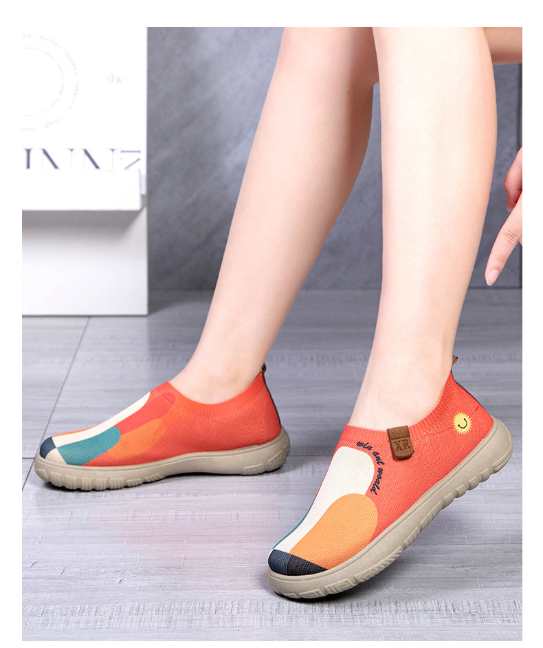 봄과 가을 새로운 오래 된 베이징 천 신발 여성의 캐주얼 플라잉 짠 두꺼운 단독 페인트 싱글 신발 피곤하지 않은 여성을위한 통기성 소프트 단독 신발
