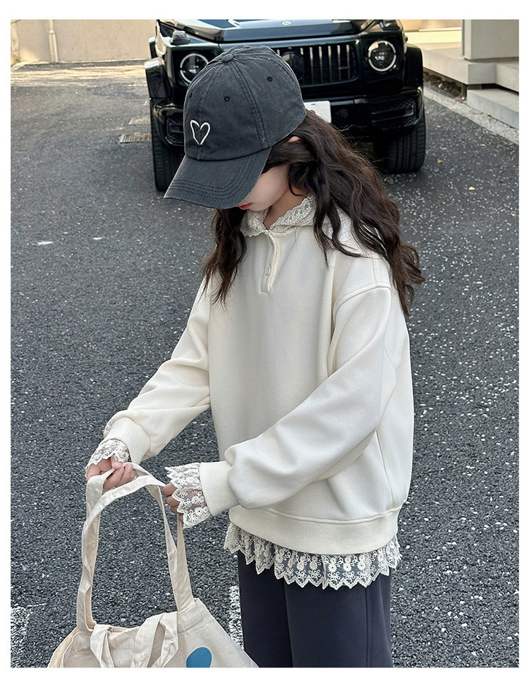 여아 가을 후드티 긴팔 이너웨어 2025 신상 중대형 아동용 세련된 니트 상의스토어 가기