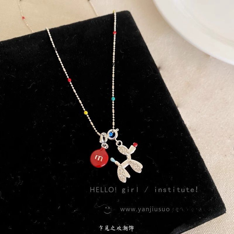 귀엽다! 레드 m 콩 풍선 개 펜던트 목걸이 여성 2025 새로운 봄, 여름 하이 엔드 스웨터 체인 액세서리스토어 가기