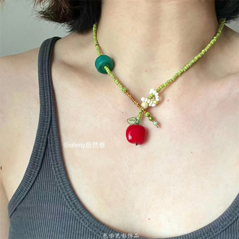 귀엽다! 레드 m 콩 풍선 개 펜던트 목걸이 여성 2025 새로운 봄, 여름 하이 엔드 스웨터 체인 액세서리