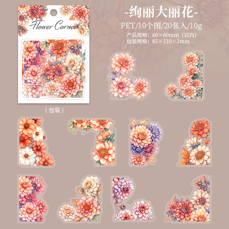 아름다운 날 애완 동물 스티커 팩 꽃 가장자리 시리즈 20 꽃 장식베이스 스티커 6