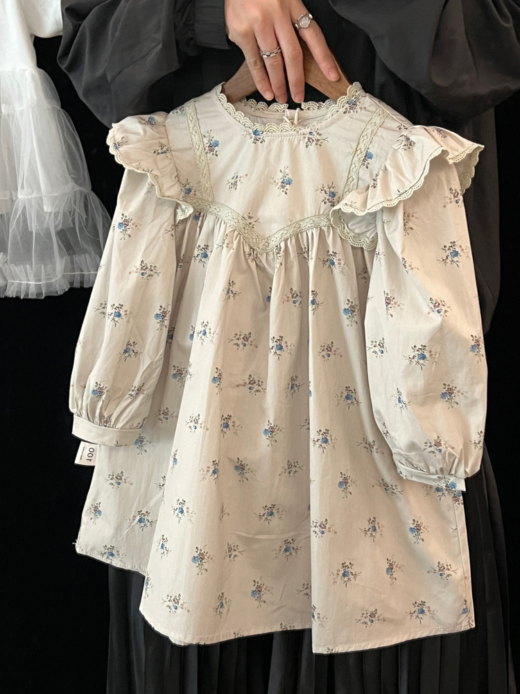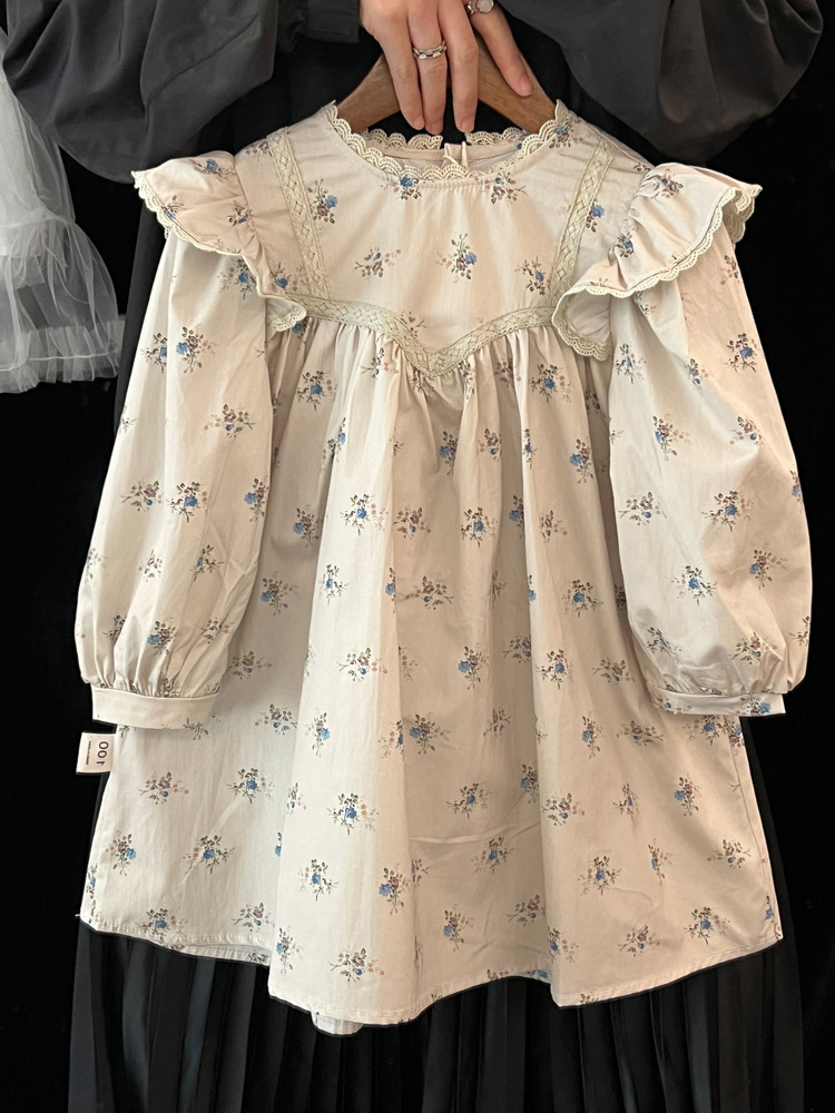 2025 새로운 소녀 원피스 봄과 가을 꽃 긴 소매 원피스 어린이 작은 비행 소매 레이스 공주 원피스스토어 가기