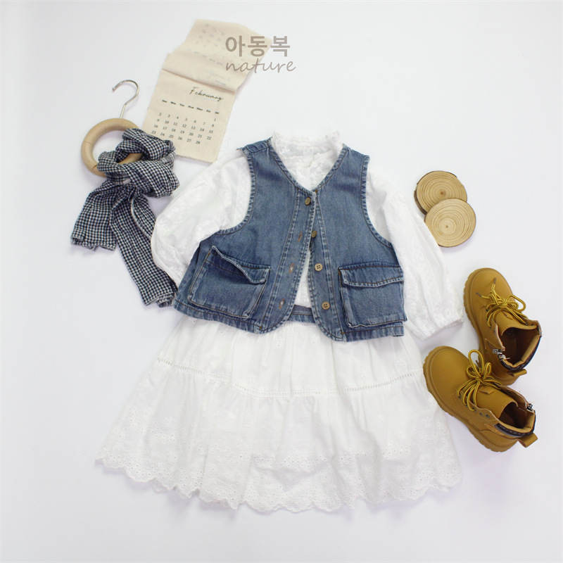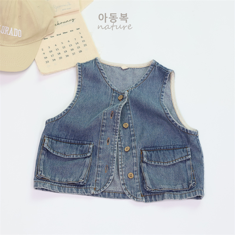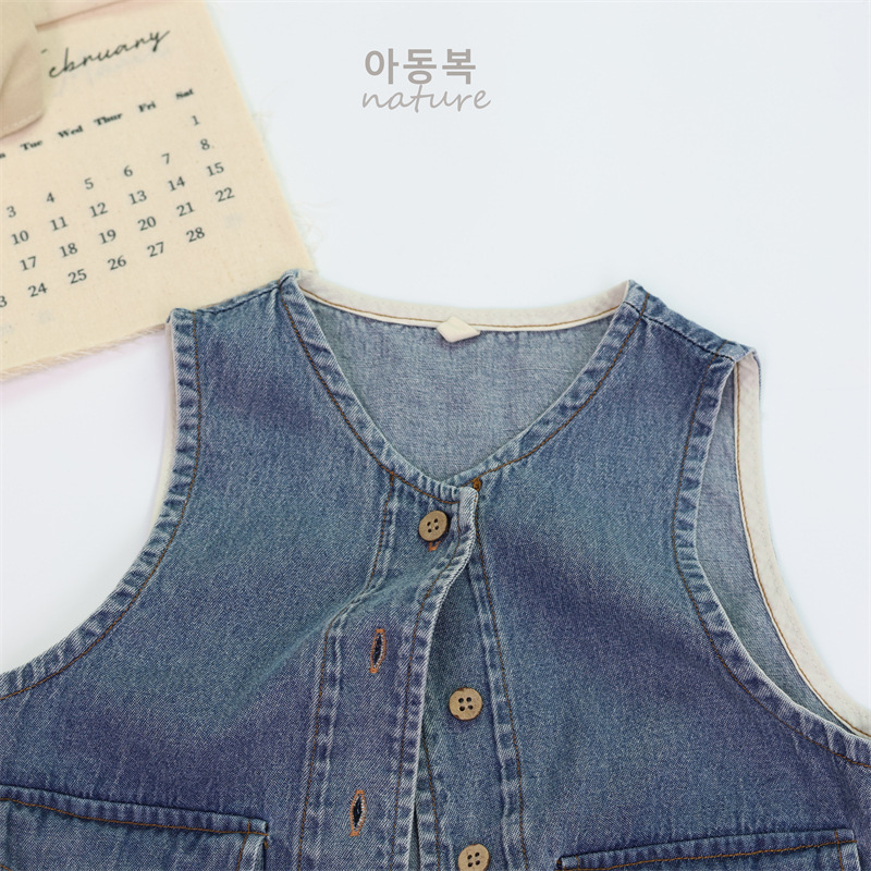 봄 2025 어린이 조끼 새 소년 한국 스타일 데님 잘 생긴 패셔너블 솔리드 컬러 걸스 민소매 재킷스토어 가기