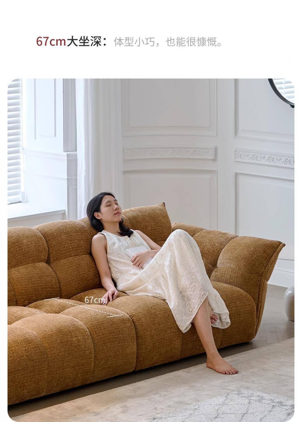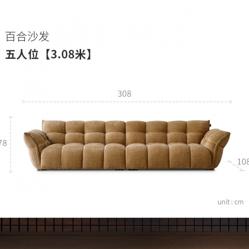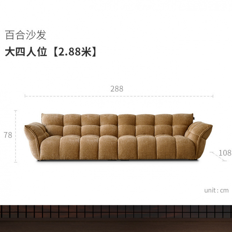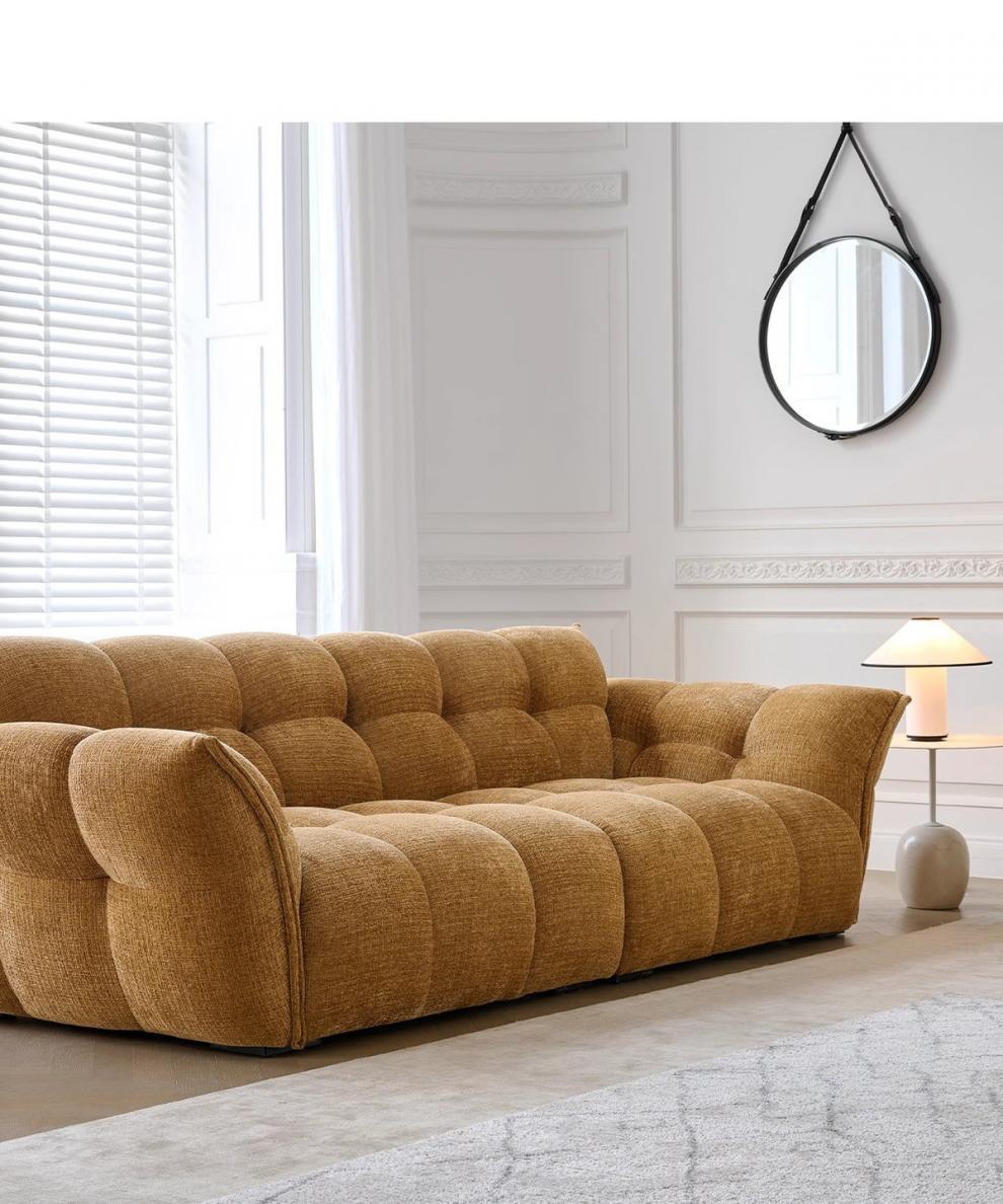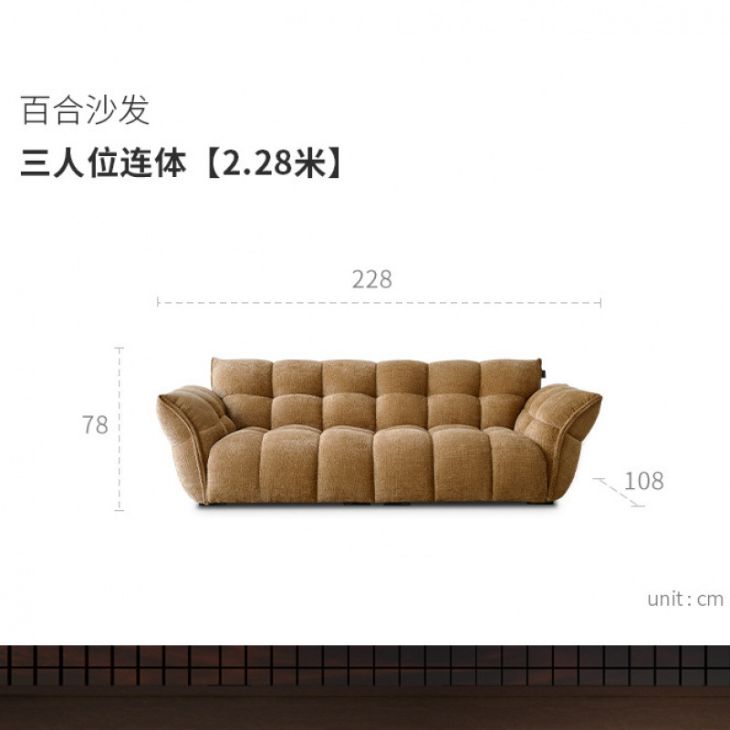셔닐 릴리 소파 프렌치 레트로 옐로우 패브릭 꽃잎 소파 거실 직선형 크림 스타일 소형 아파트 소파