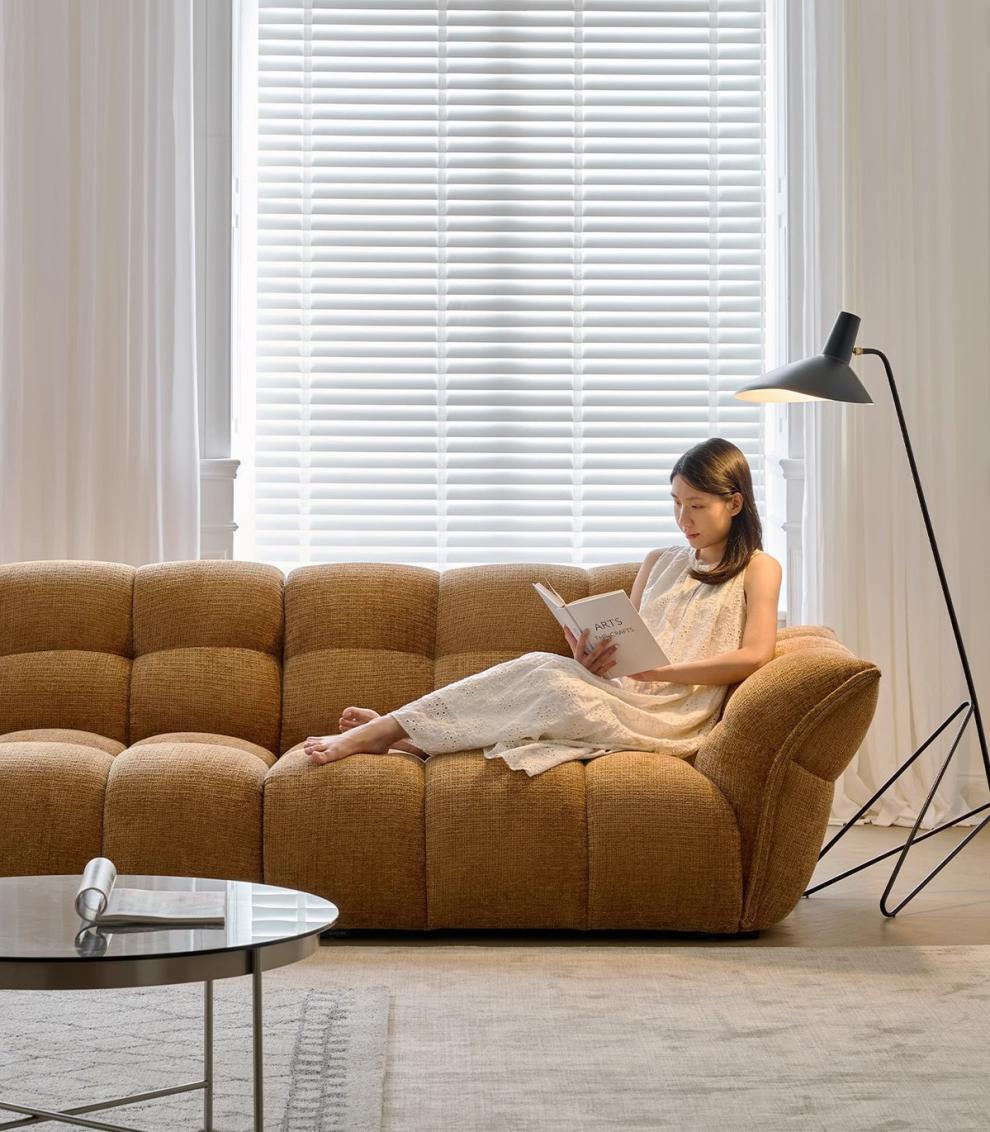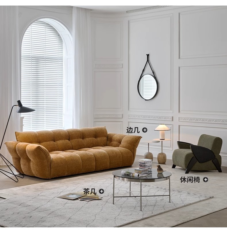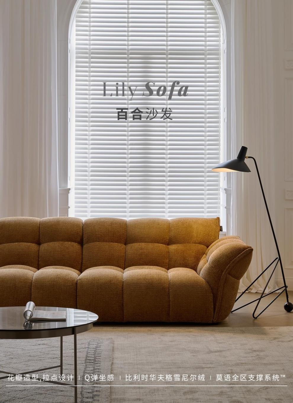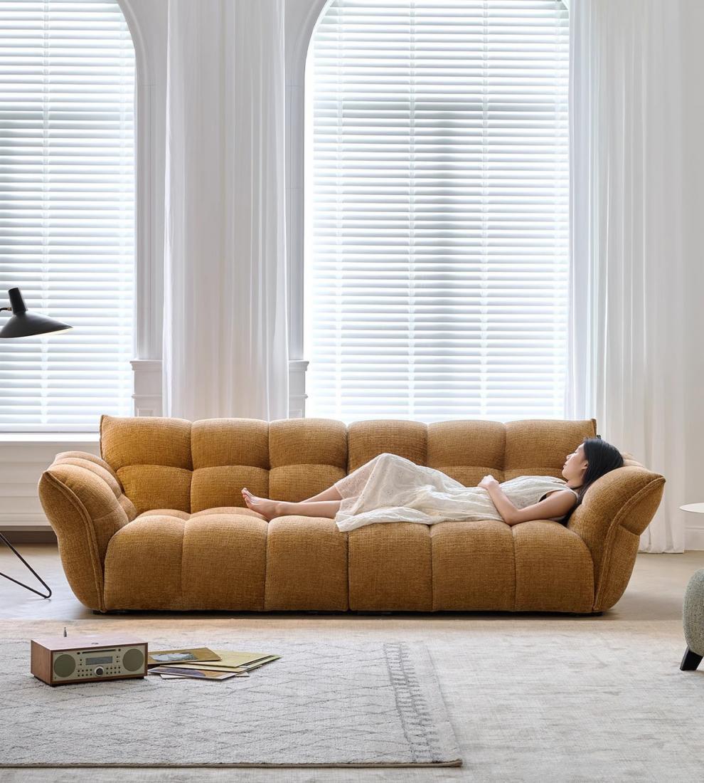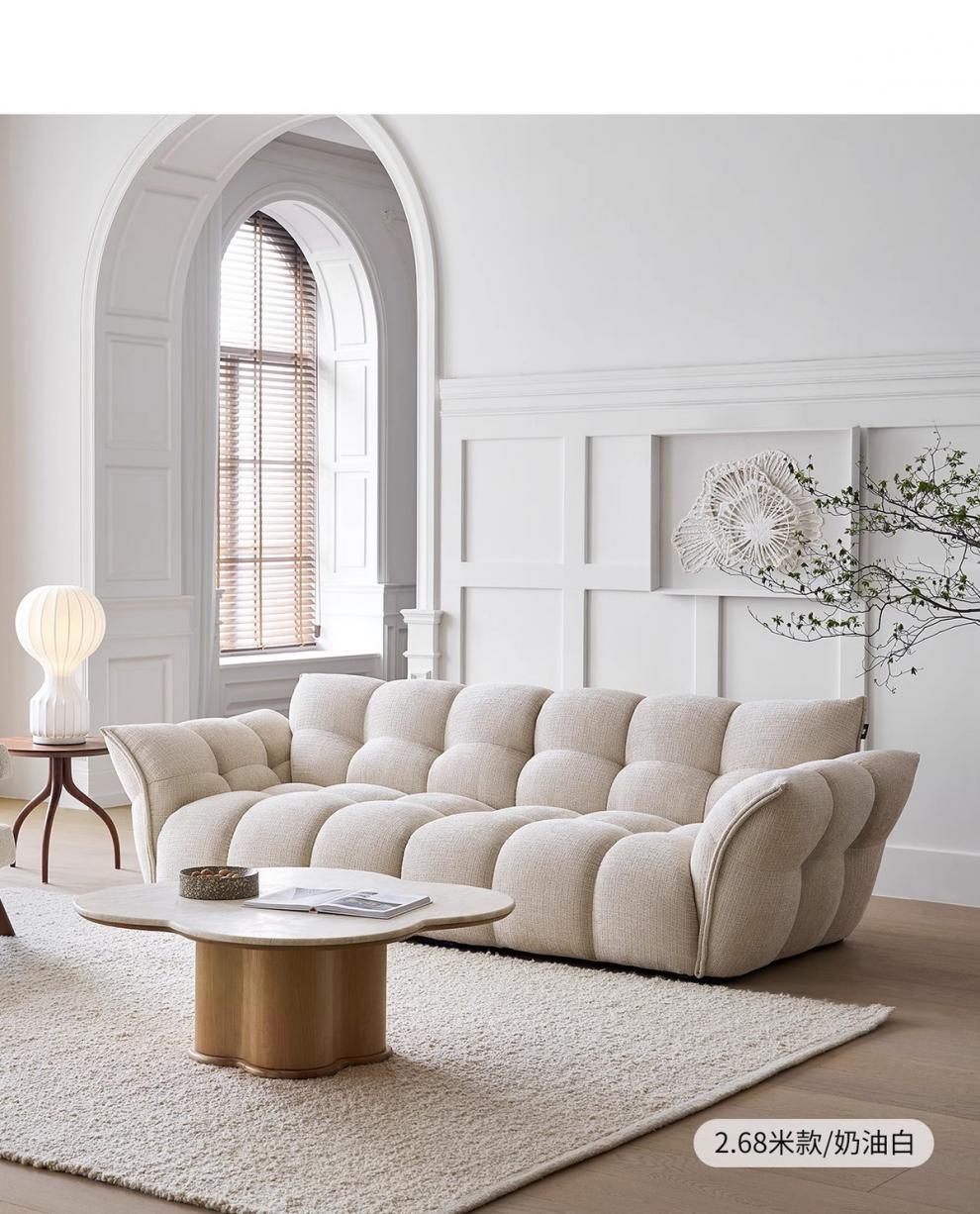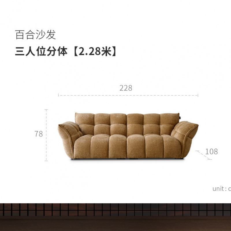 셔닐 릴리 소파 프렌치 레트로 옐로우 패브릭 꽃잎 소파 거실 직선형 크림 스타일 소형 아파트 소파스토어 가기