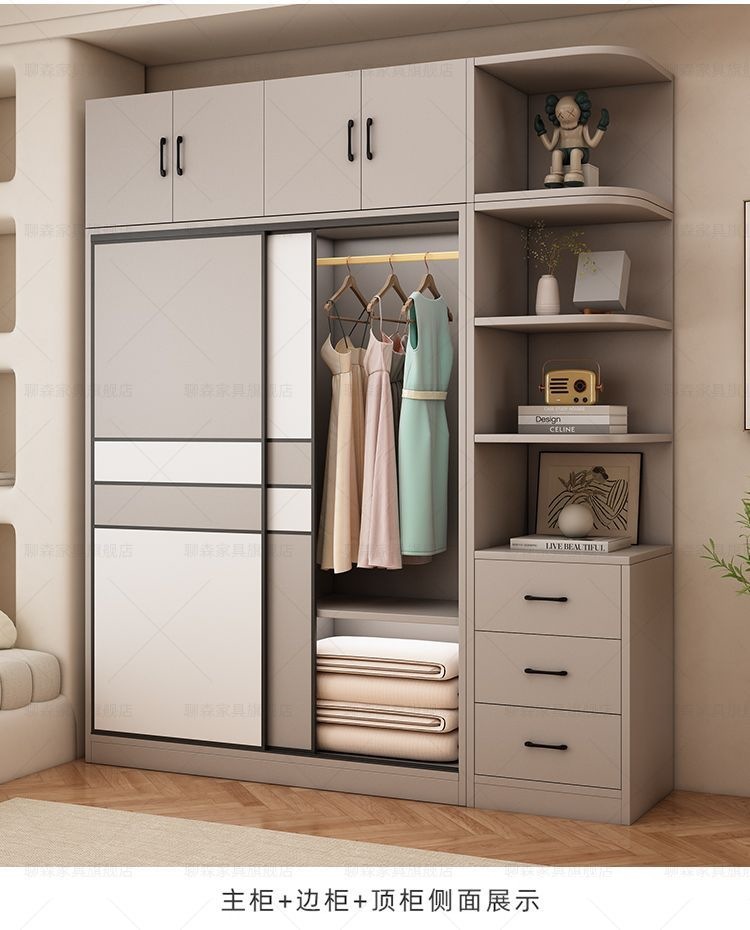 옷장 가정용 침실 나무 미닫이 문 어린이 옷장 임대 주택 경제적 인 간단한 캐비닛 작은 아파트스토어 가기