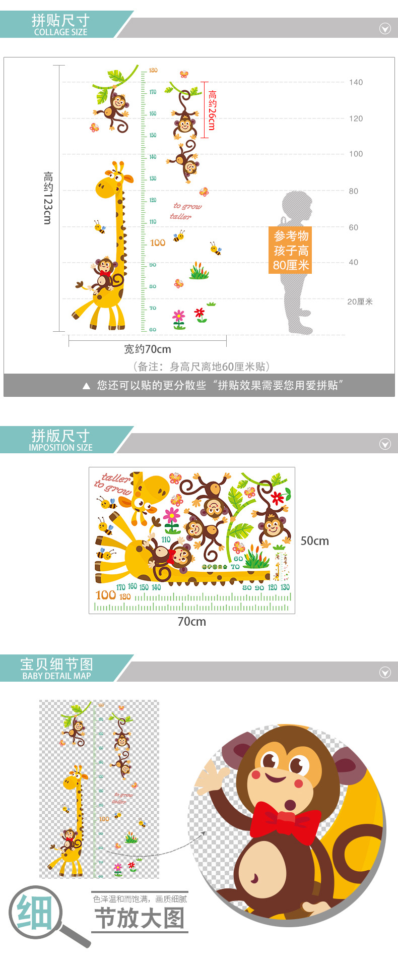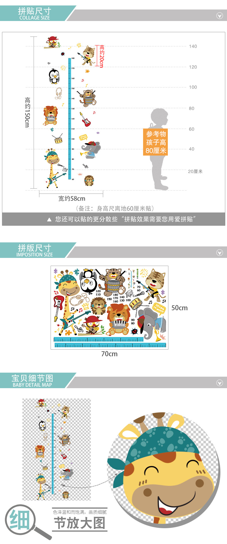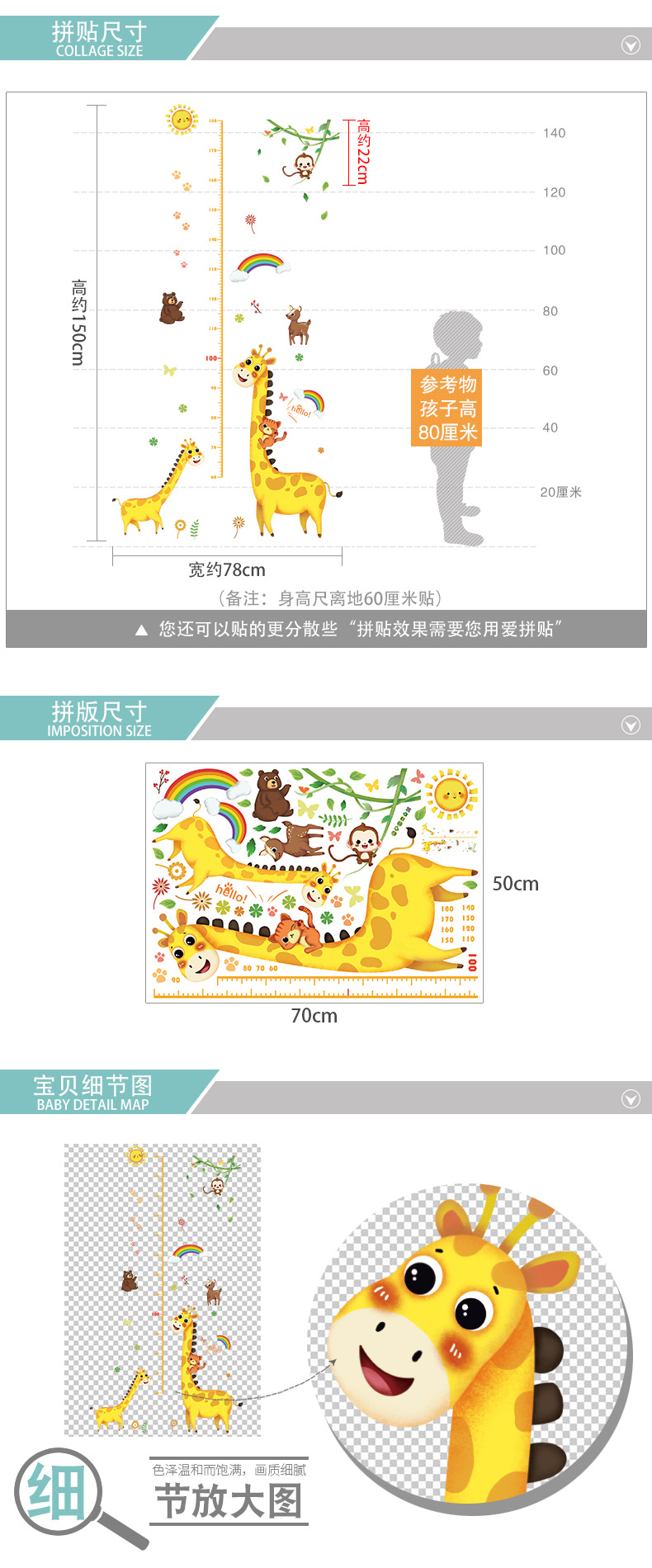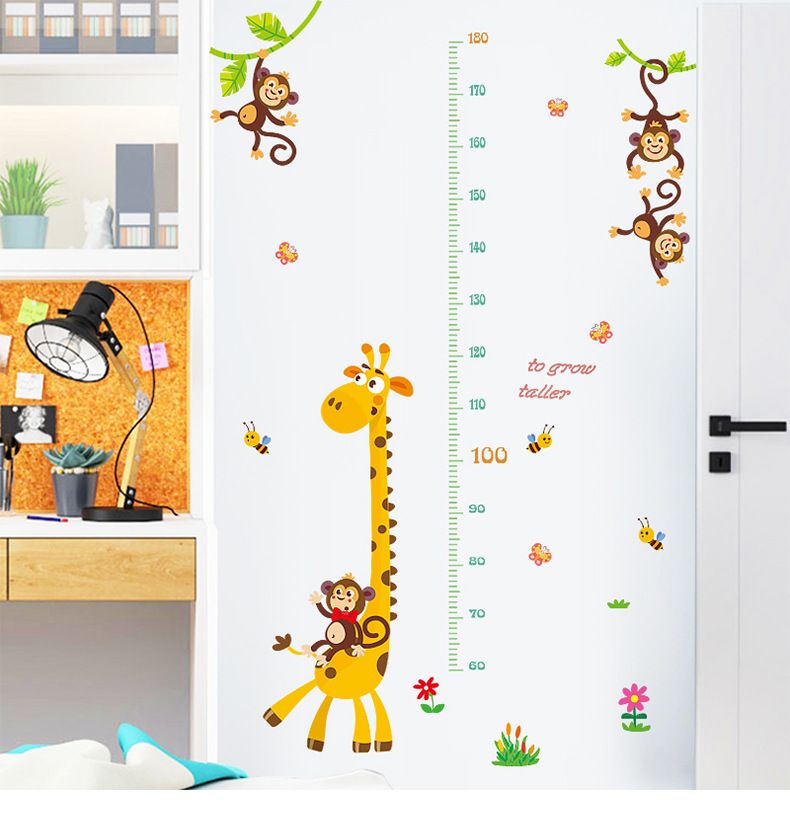 그림 sk7196 기린 및 기타 어린이 높이 측정 통치자 재고 직선 배치 동물 높이 스티커에 오신 것을 환영합니다스토어 가기