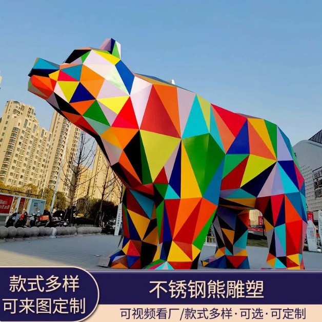 대형 스테인리스 만화 조각 공장 정원 풍경 쇼핑몰 장식품 그물 붉은 상업 거리 기하학적 곰 조각