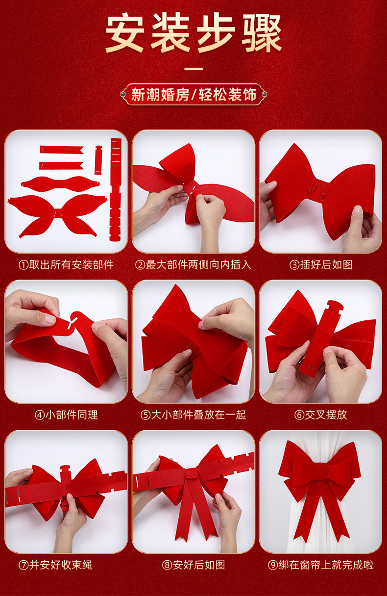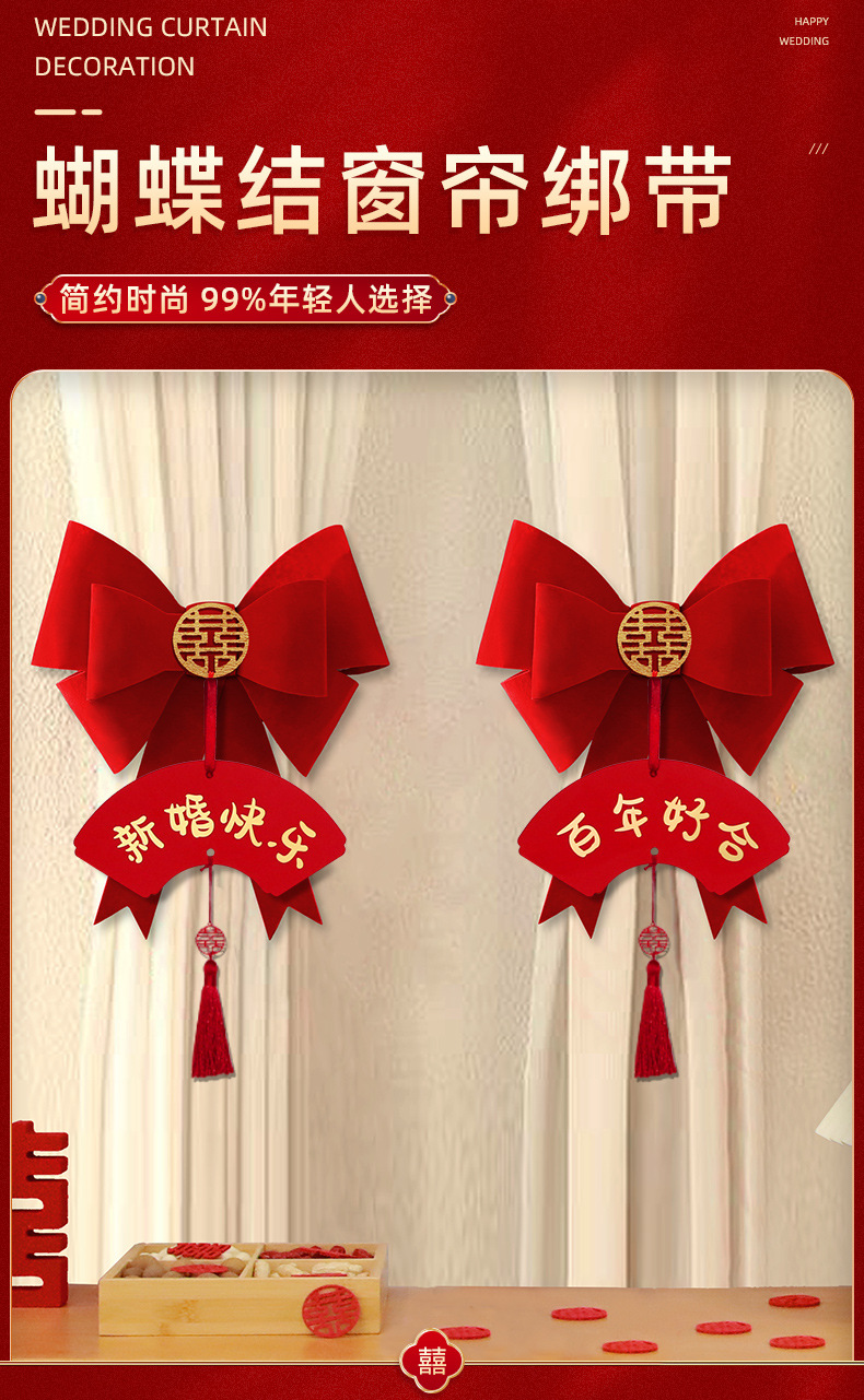웨딩 룸 커튼 천 새 집 거실 웨딩 스트랩 장식 남자의 방 넥타이 장식 세트 웨딩 용품스토어 가기