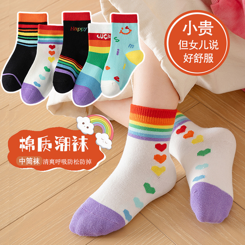 [신간] 봄 · 가을 어린이 양말 여자 한국 패션 조커 아기 달콤한 귀여운 레인보우 양말