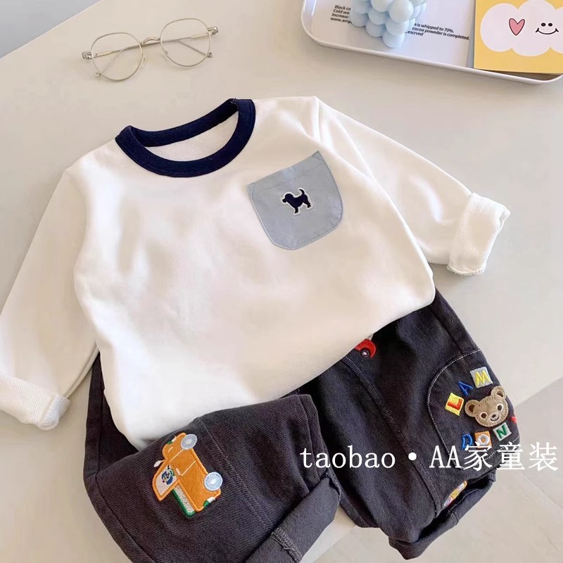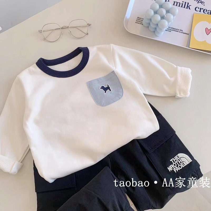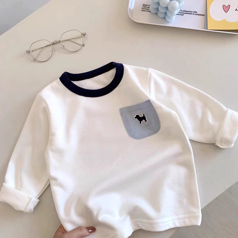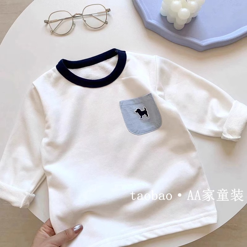어린이 좋은베이스 셔츠 ~ 가을 새로운 소년 간단한 단색 크루 넥 긴 소매 티셔츠 아기 서양식 탑 트렌디스토어 가기