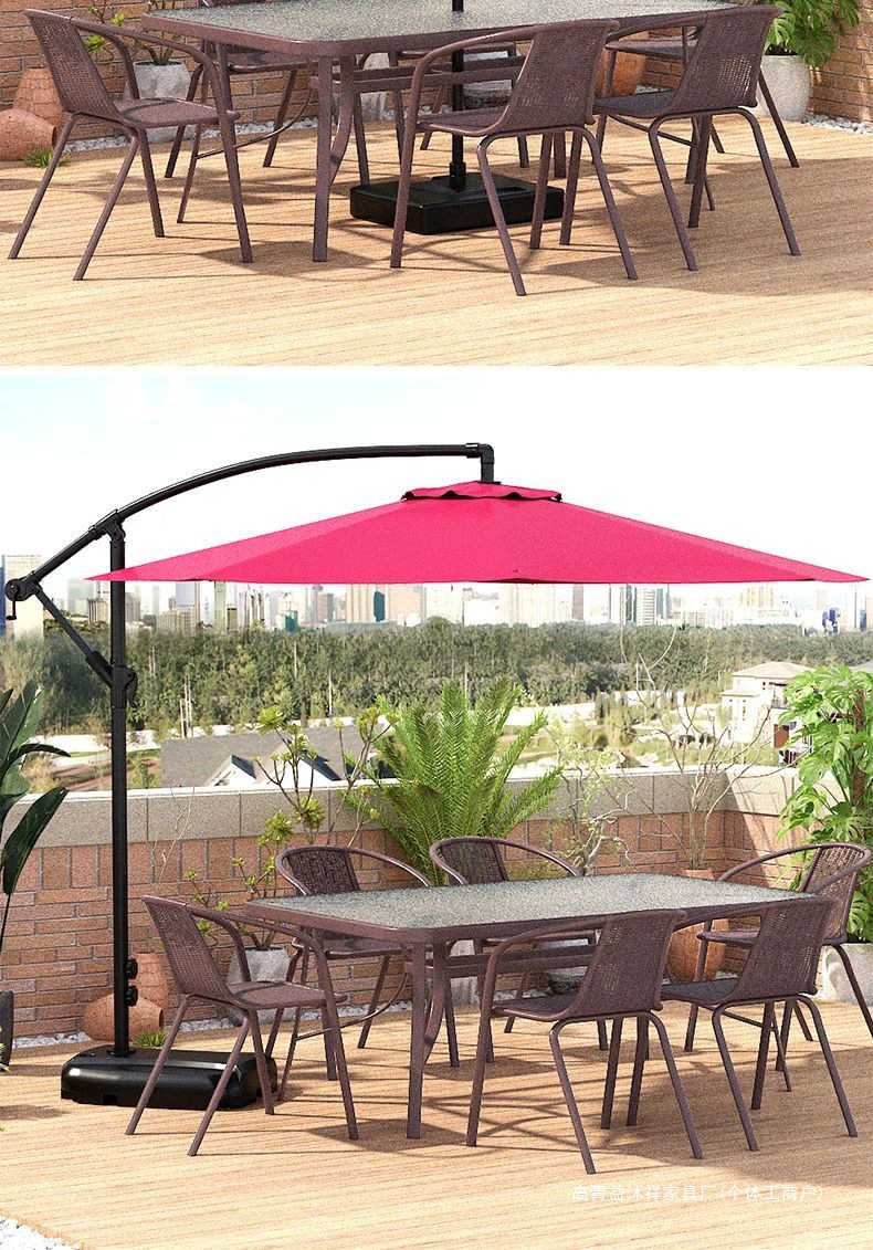 • 120x80 직사각형 테이블 + 의자 6개 + 이중 상단 중앙 기둥 우산