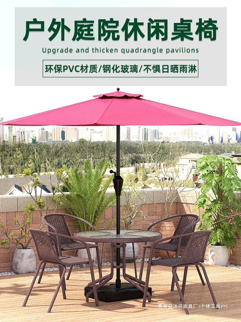 야외 테이블과 의자 우산 조합 안뜰 야외 정원 테이블과 의자 3 피스 세트 가정용 야외 레저 발코니 작은 테이블과 의자