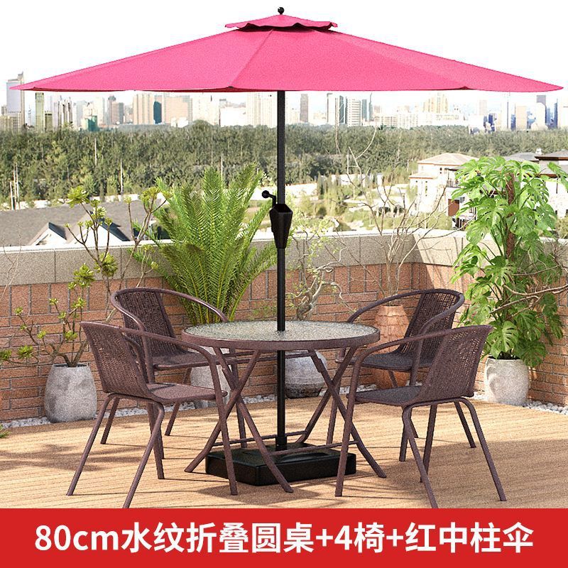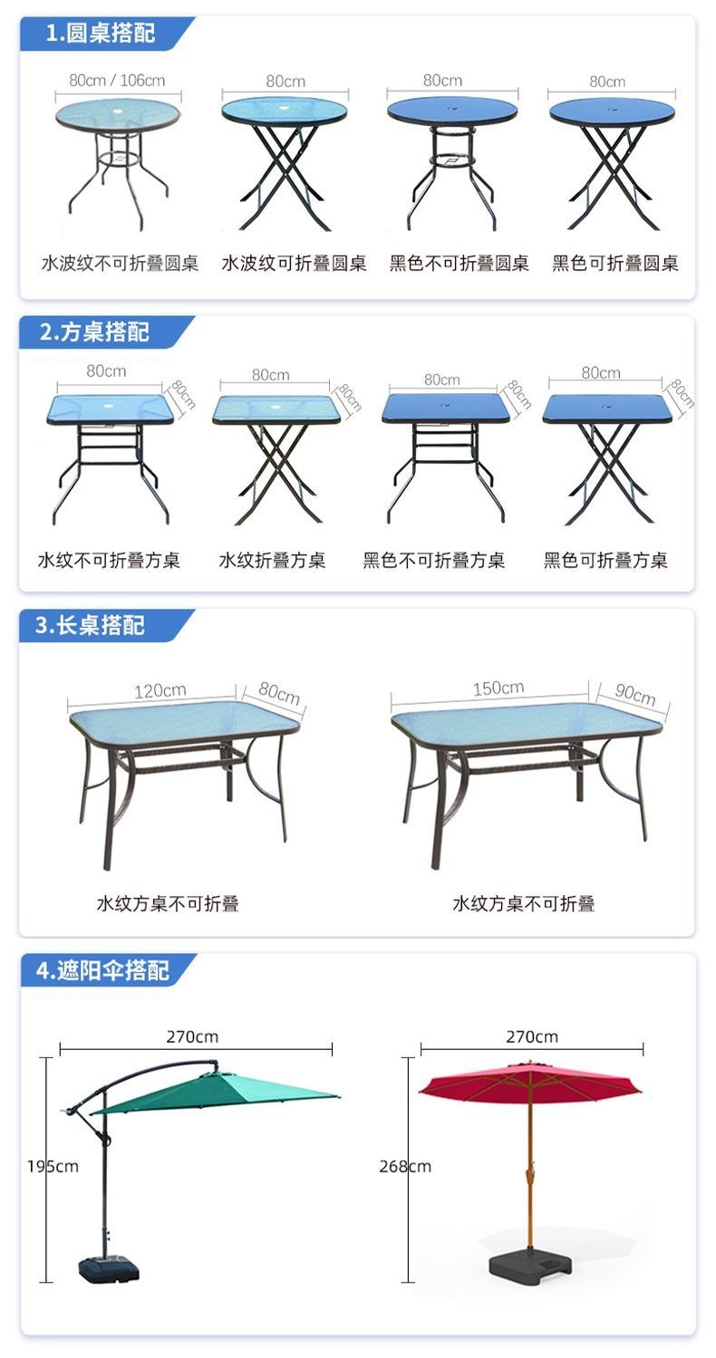 • 80 검정색 접이식 원형 테이블 + 의자 4개 + 중간 기둥 우산