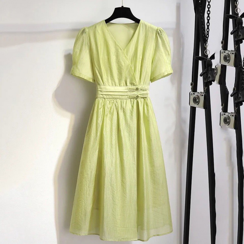하이 엔드 세련된 텐셀 원피스 여성 여름 새로운 슬리밍 프랑스 스타일 우아한 하이 엔드 유럽 칼라 롱 스커트