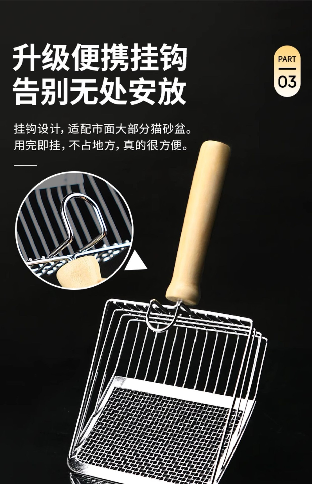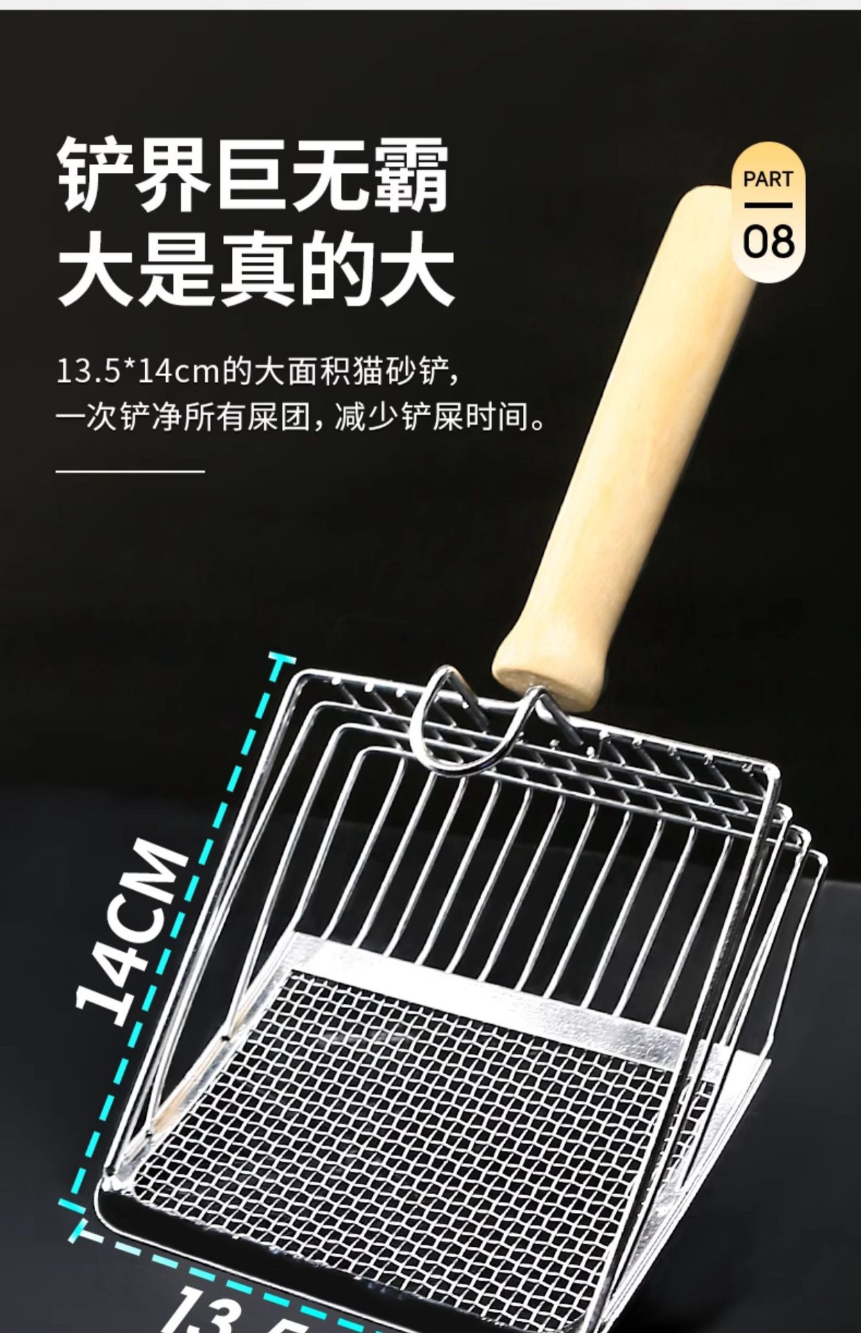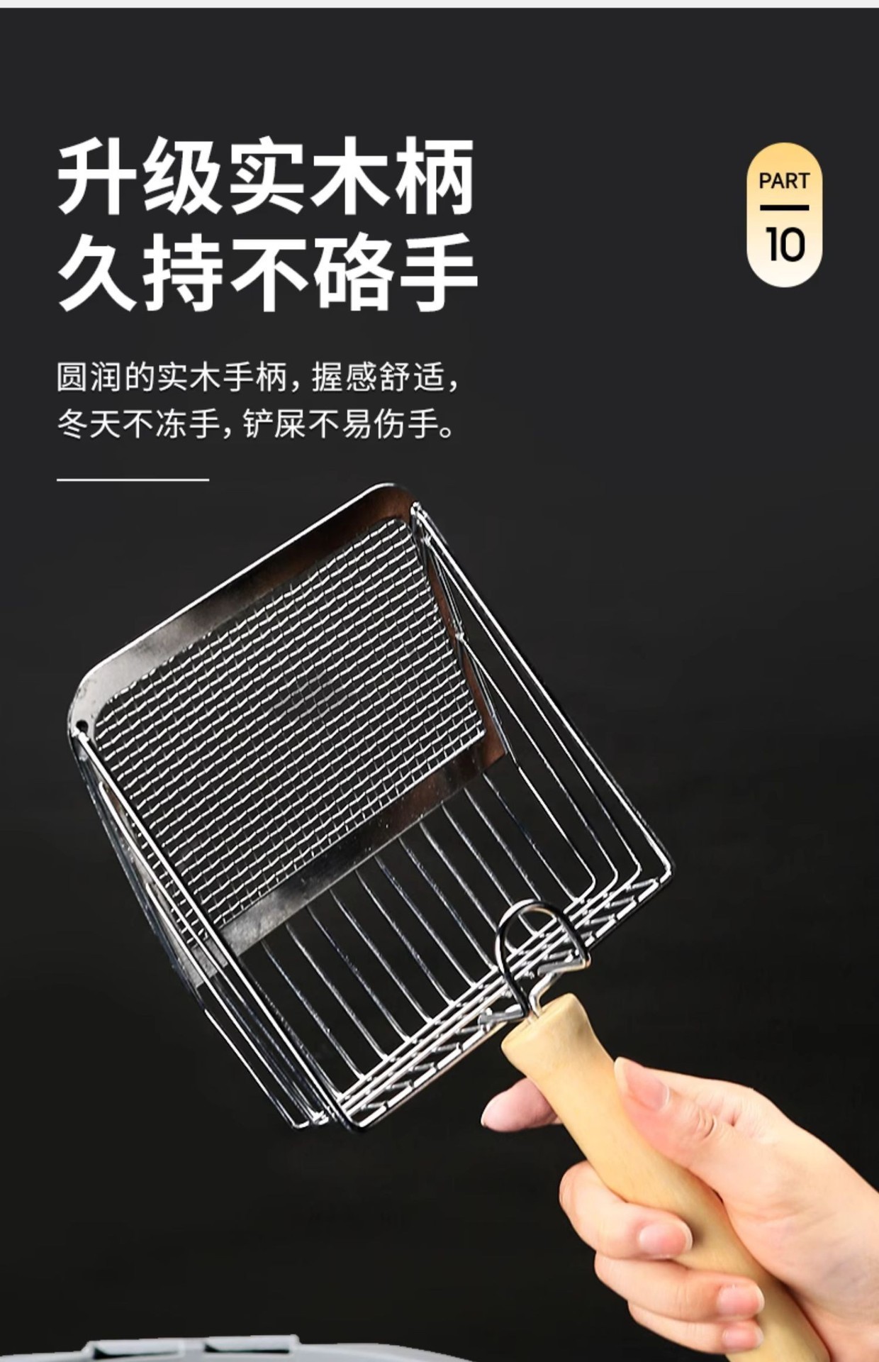 • 6세대 고양이 쓰레기 국자-그물 실버-나무 손잡이 모델