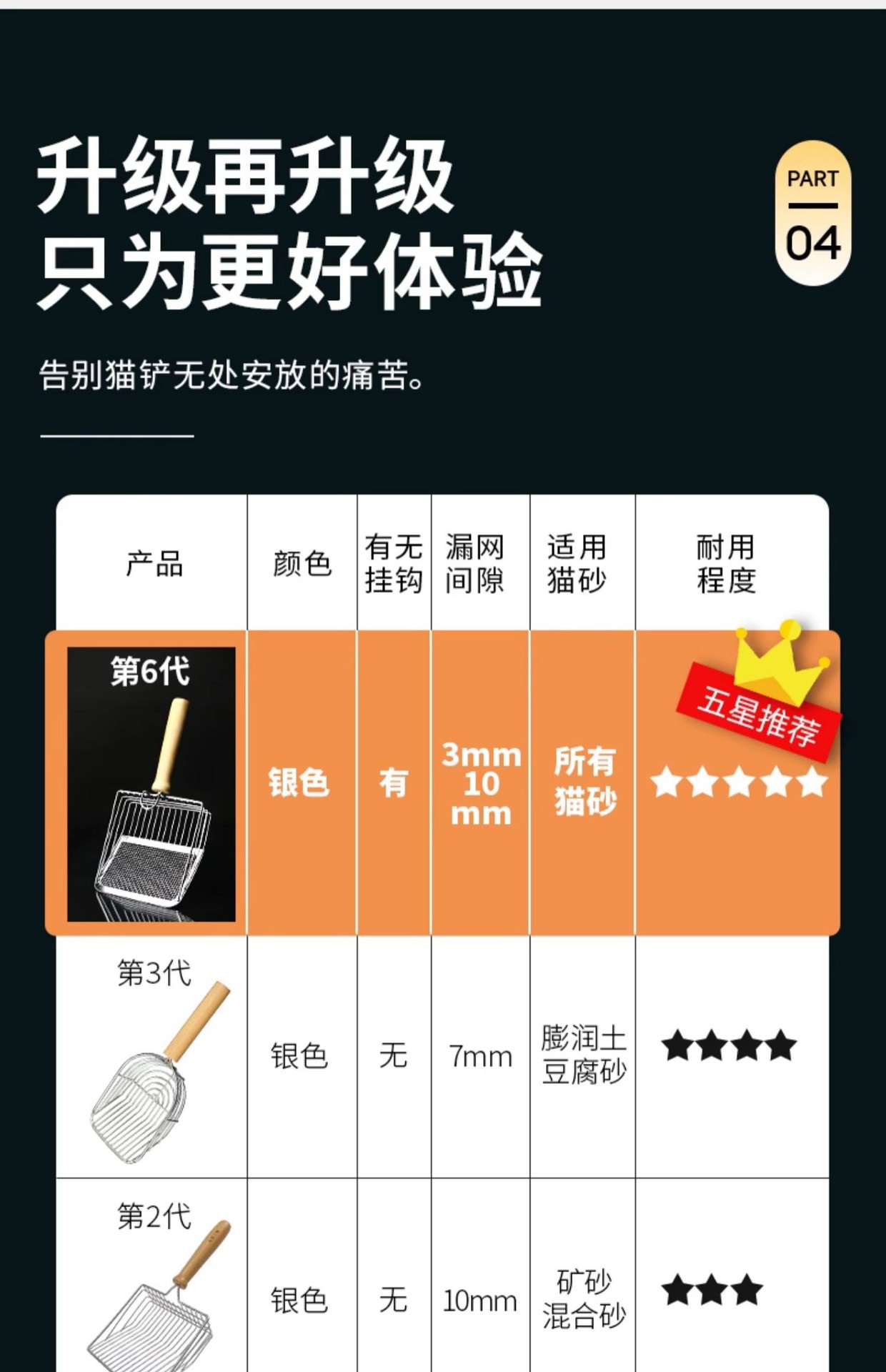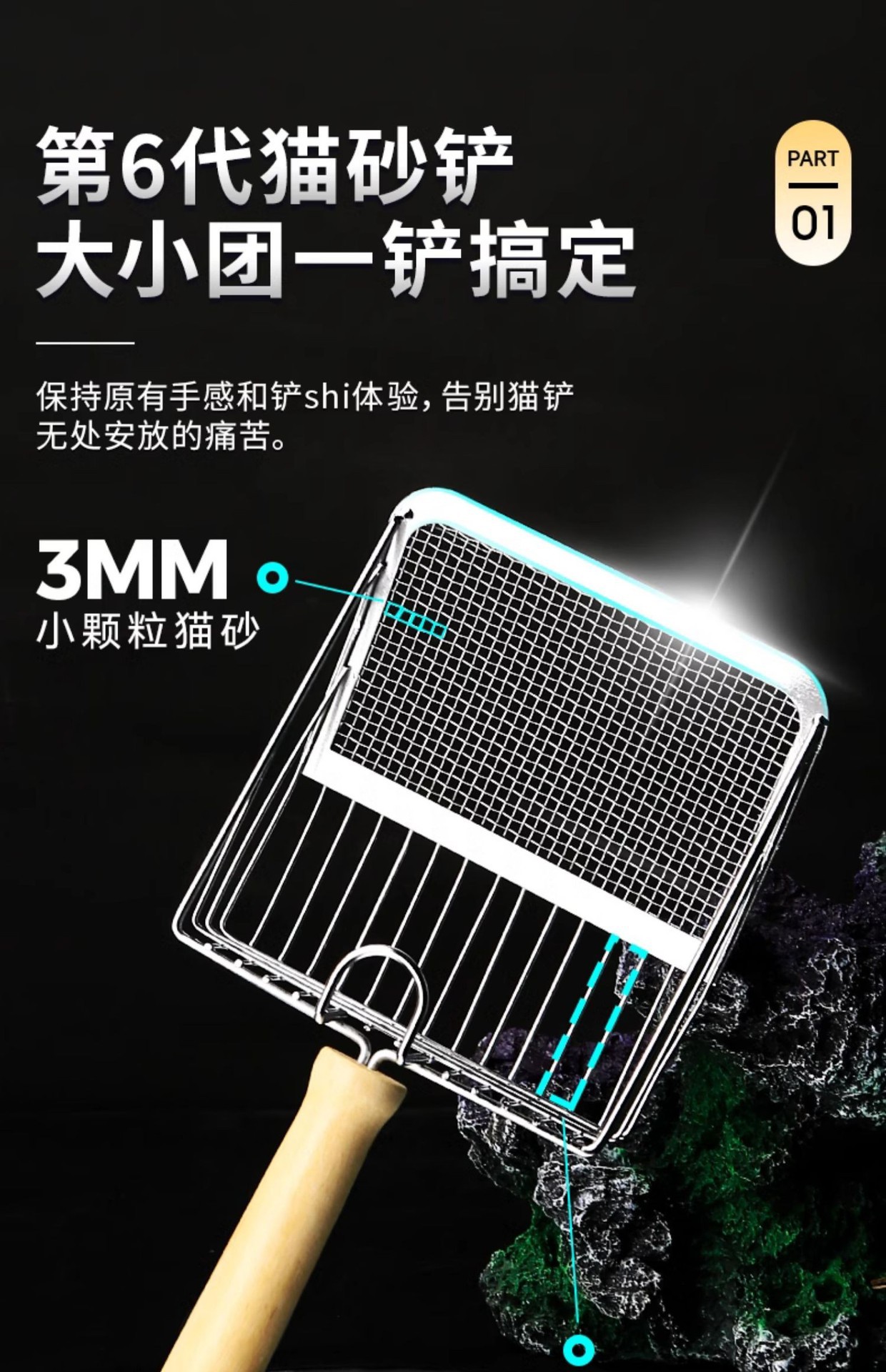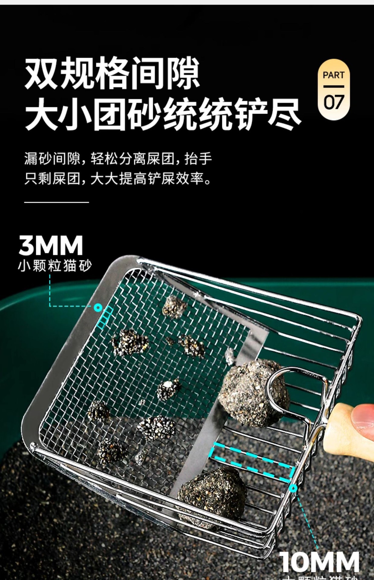 • 6세대 고양이 쓰레기 국자-그물 실버-나무 손잡이 모델