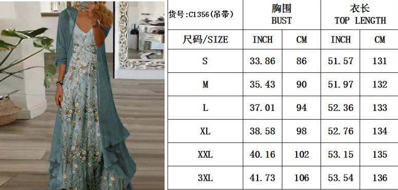 2025 대외 무역 여성 투피스 통근 스타일 우아한 여신 게으른 디지털 인쇄 슬링 쉬폰 원피스스토어 가기