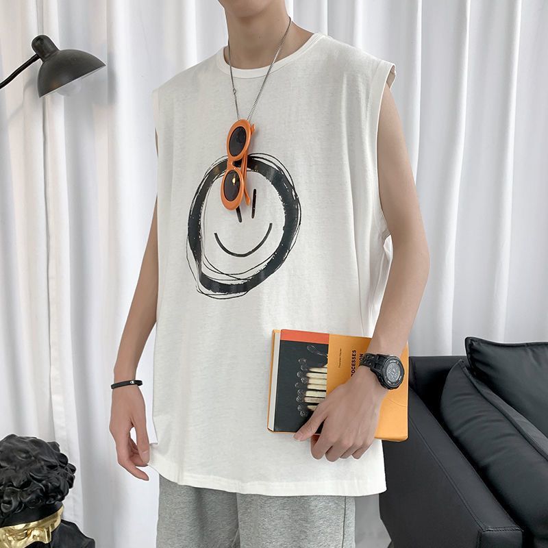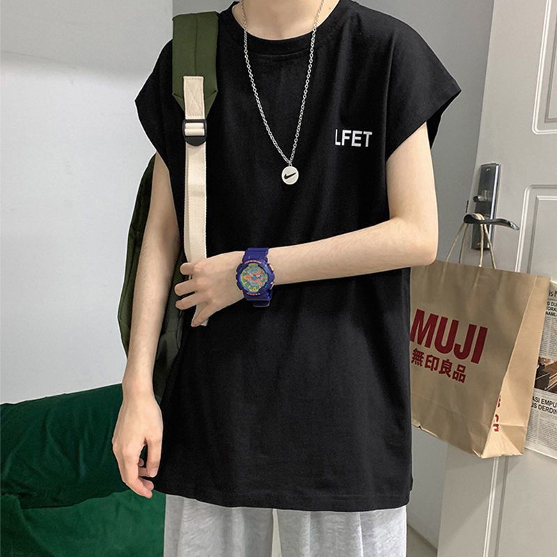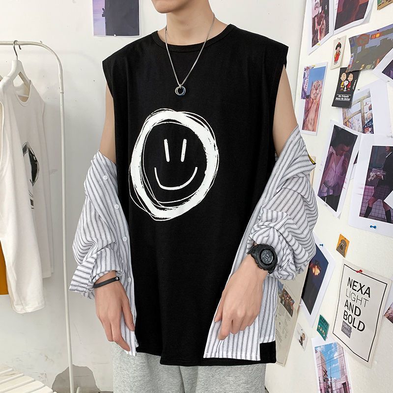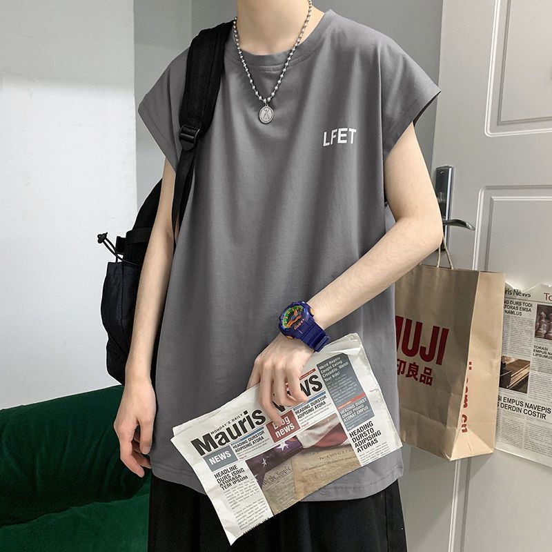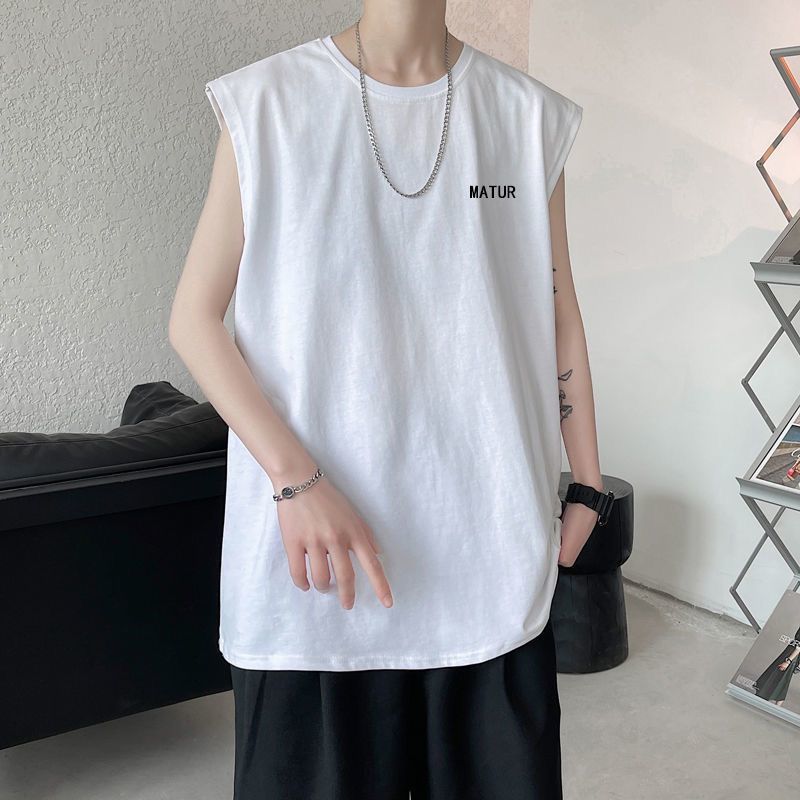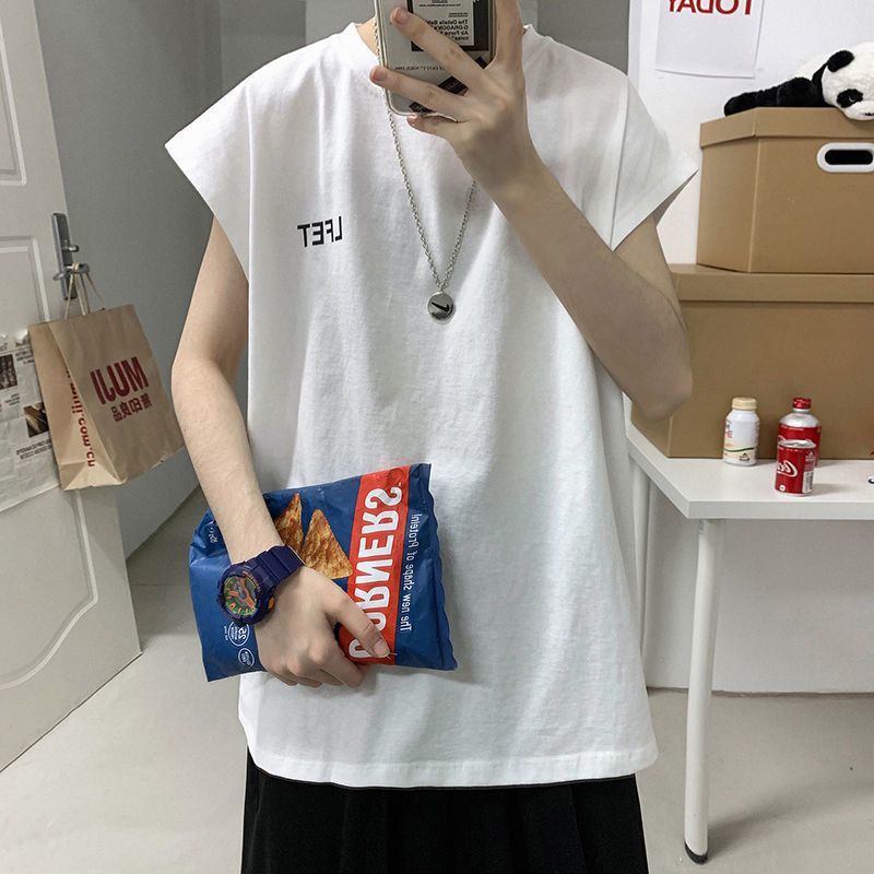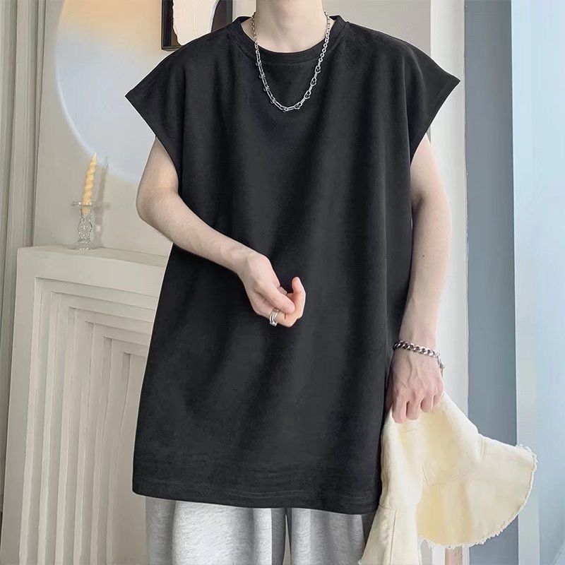 여름 민소매 티셔츠 남자의 유행 플러스 무게 큰 느슨한 올 매치 언더 셔츠 한국 스타일 유행 브랜드 플러스 사이즈 허리 코트 조끼스토어 가기