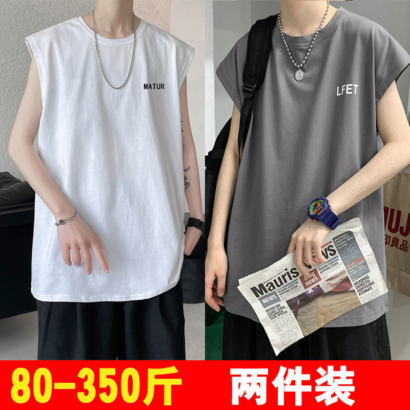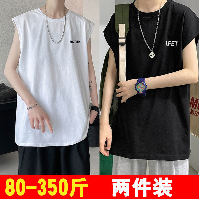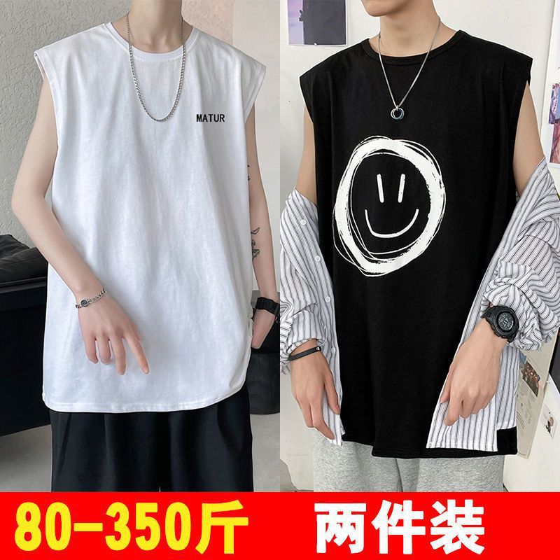 여름 민소매 티셔츠 남자의 유행 플러스 무게 큰 느슨한 올 매치 언더 셔츠 한국 스타일 유행 브랜드 플러스 사이즈 허리 코트 조끼