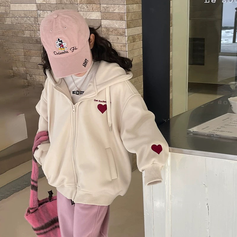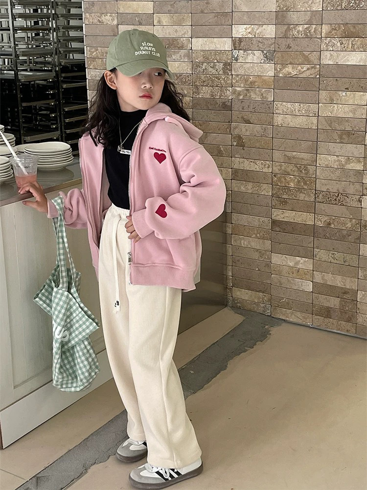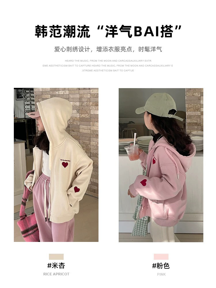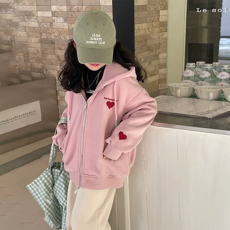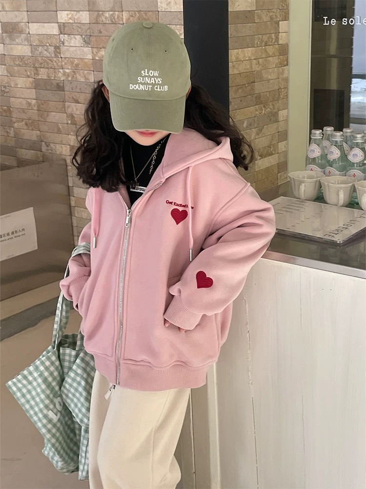소녀 사랑 인쇄 스웨터 재킷 2025 봄 새로운 도착 빅 키즈 웨스턴 스타일 캐주얼 후드 지퍼 카디건스토어 가기