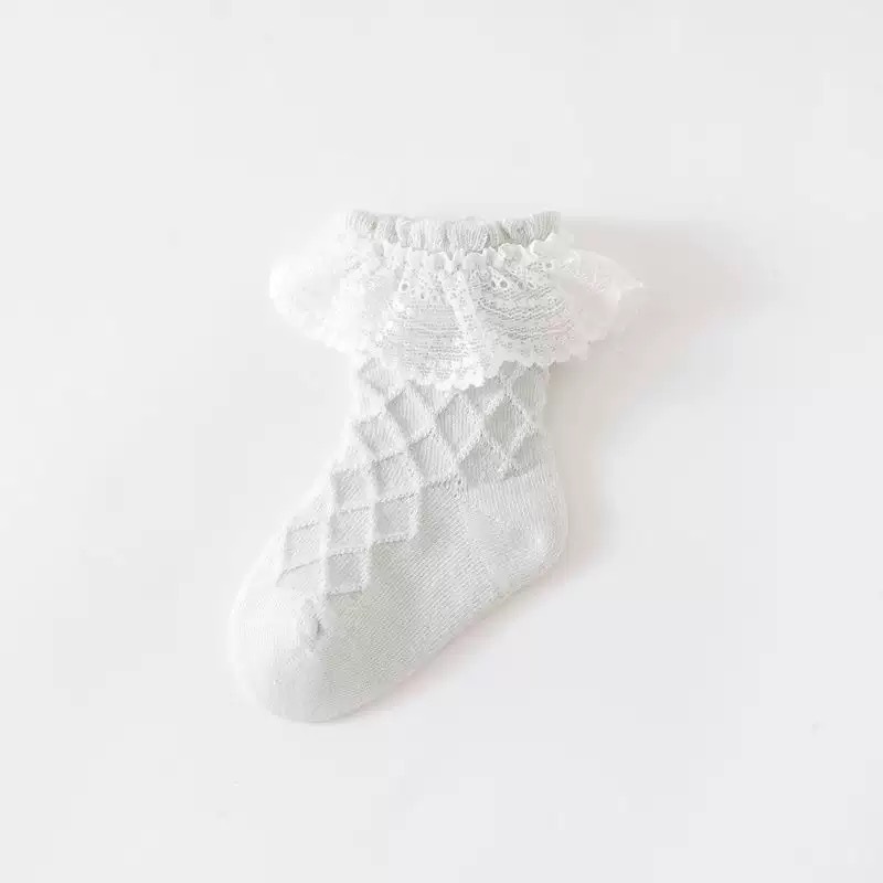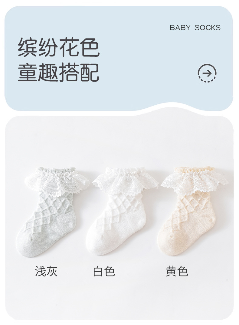Sunseeker Yujia 봄과 여름 새로운 아기 양말 클래스 면화 뼈없는 공주 레이스 솔리드 컬러 부드럽고 편안한 미드 튜브 양말스토어 가기