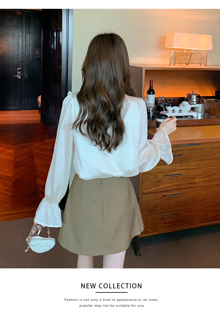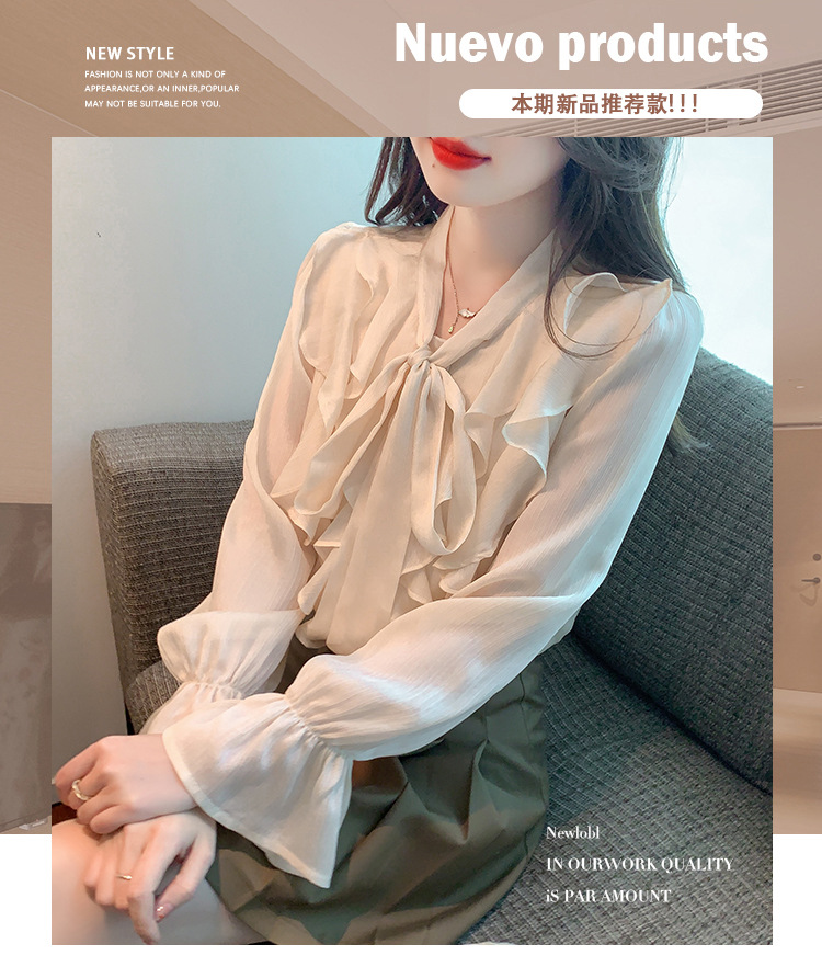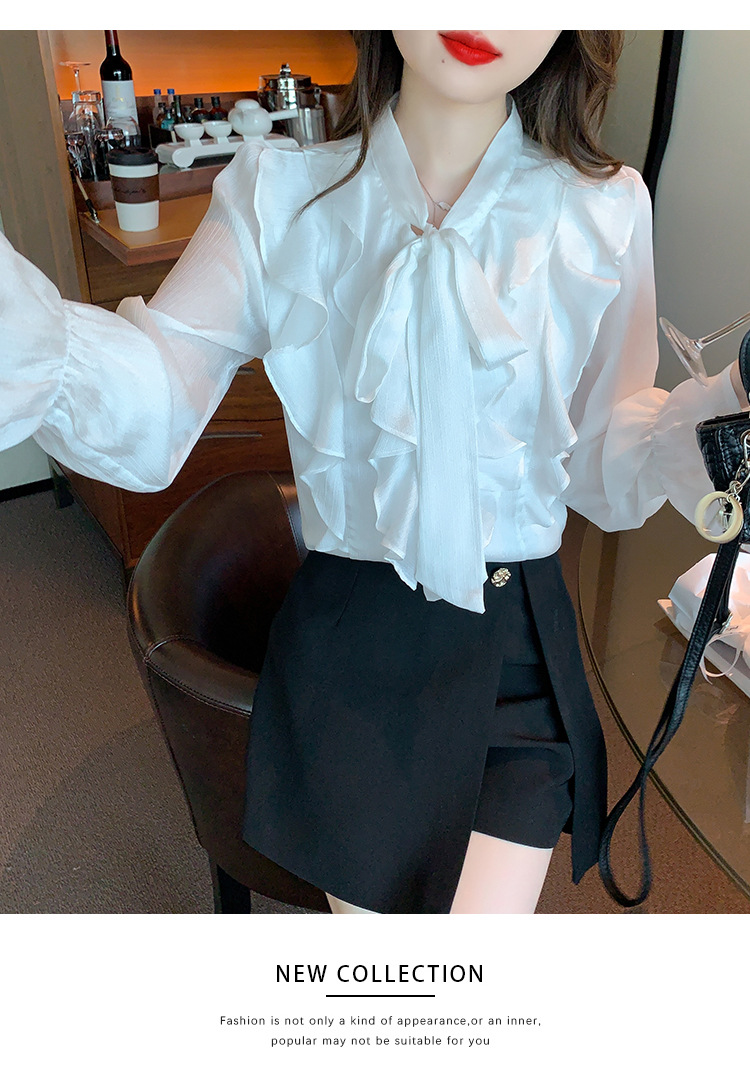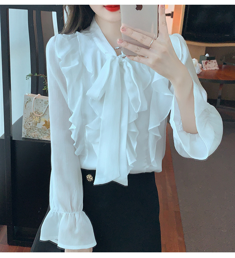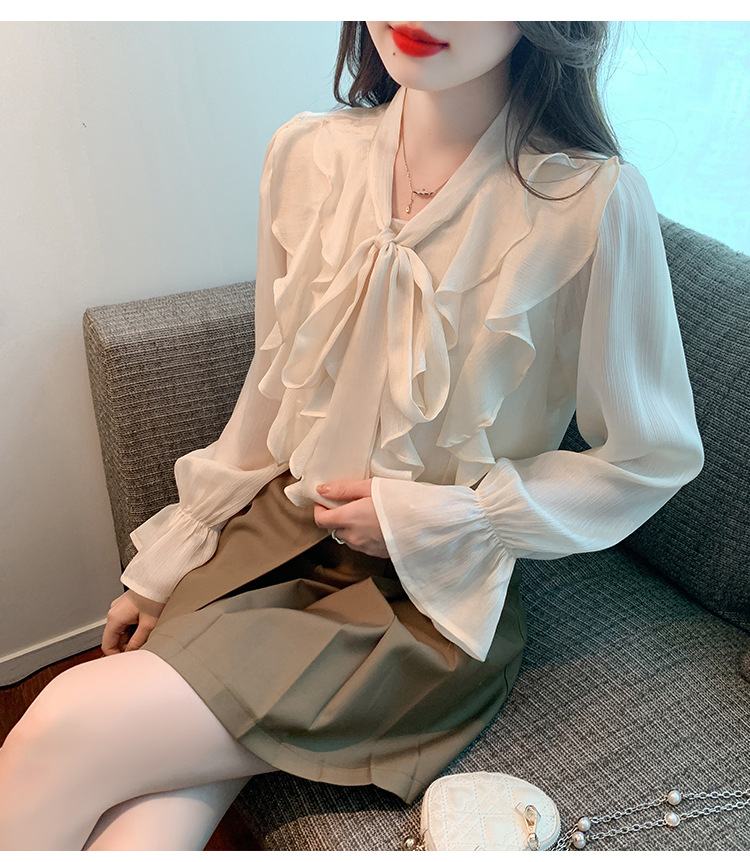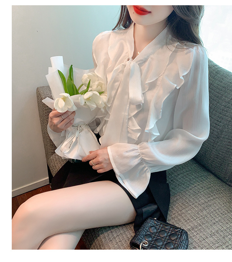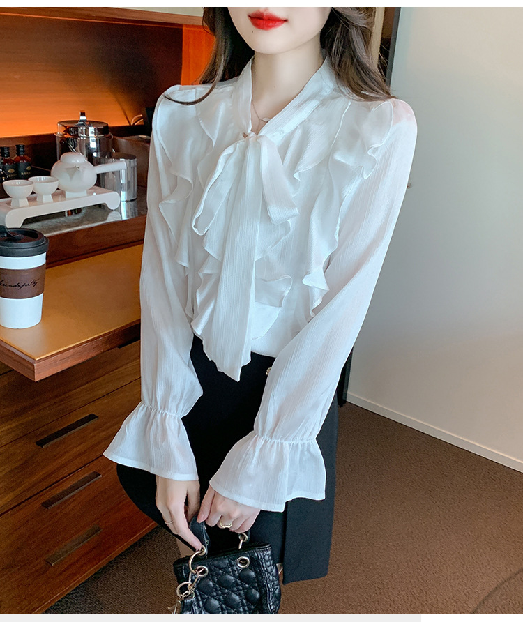 여성을위한 프렌치 러플 연령 감소 루즈 쉬폰 셔츠 2025 봄 달콤한 기질 보우 다용도 긴팔 탑스토어 가기
