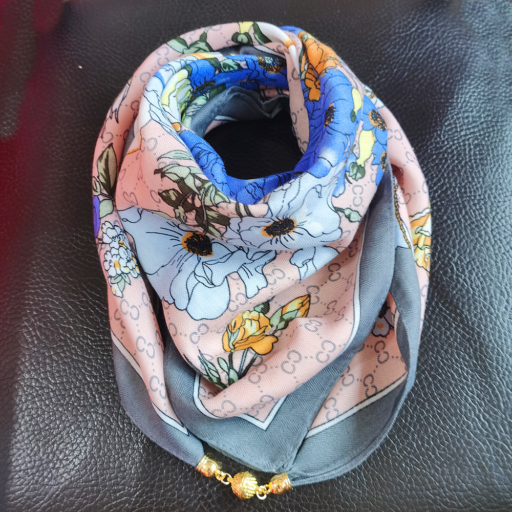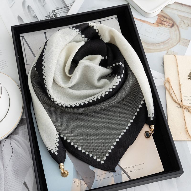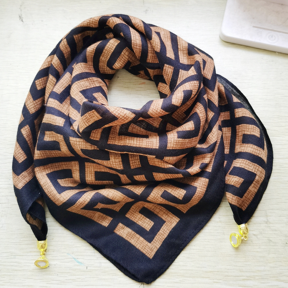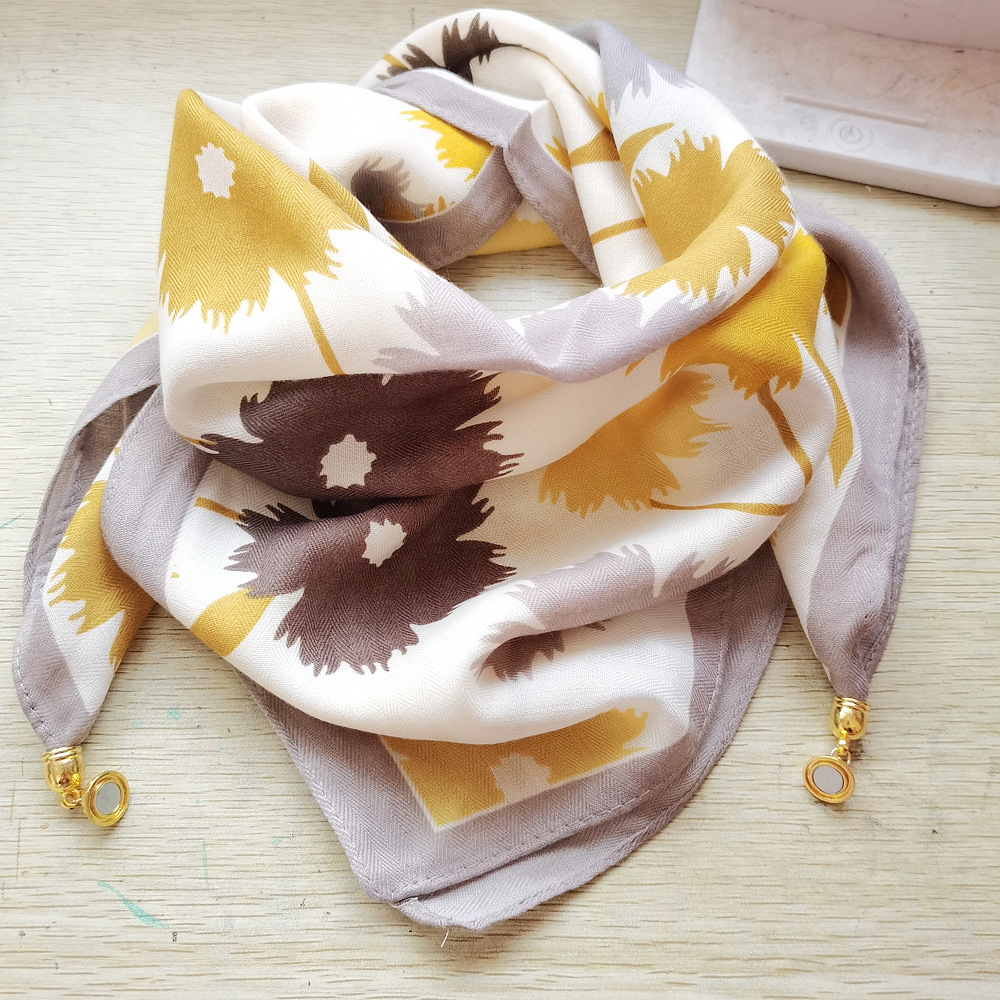 마그네틱 버클 코튼 리넨 작은 스퀘어 스카프 여성의 다기능 봄과 가을 올 매치 하이 엔드 넥 보호 작은 스카프 게으른 스카프스토어 가기