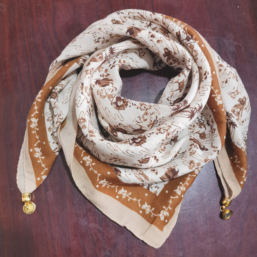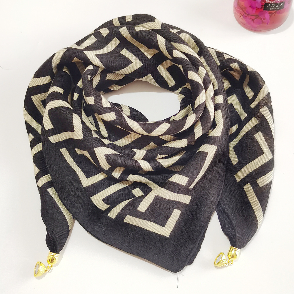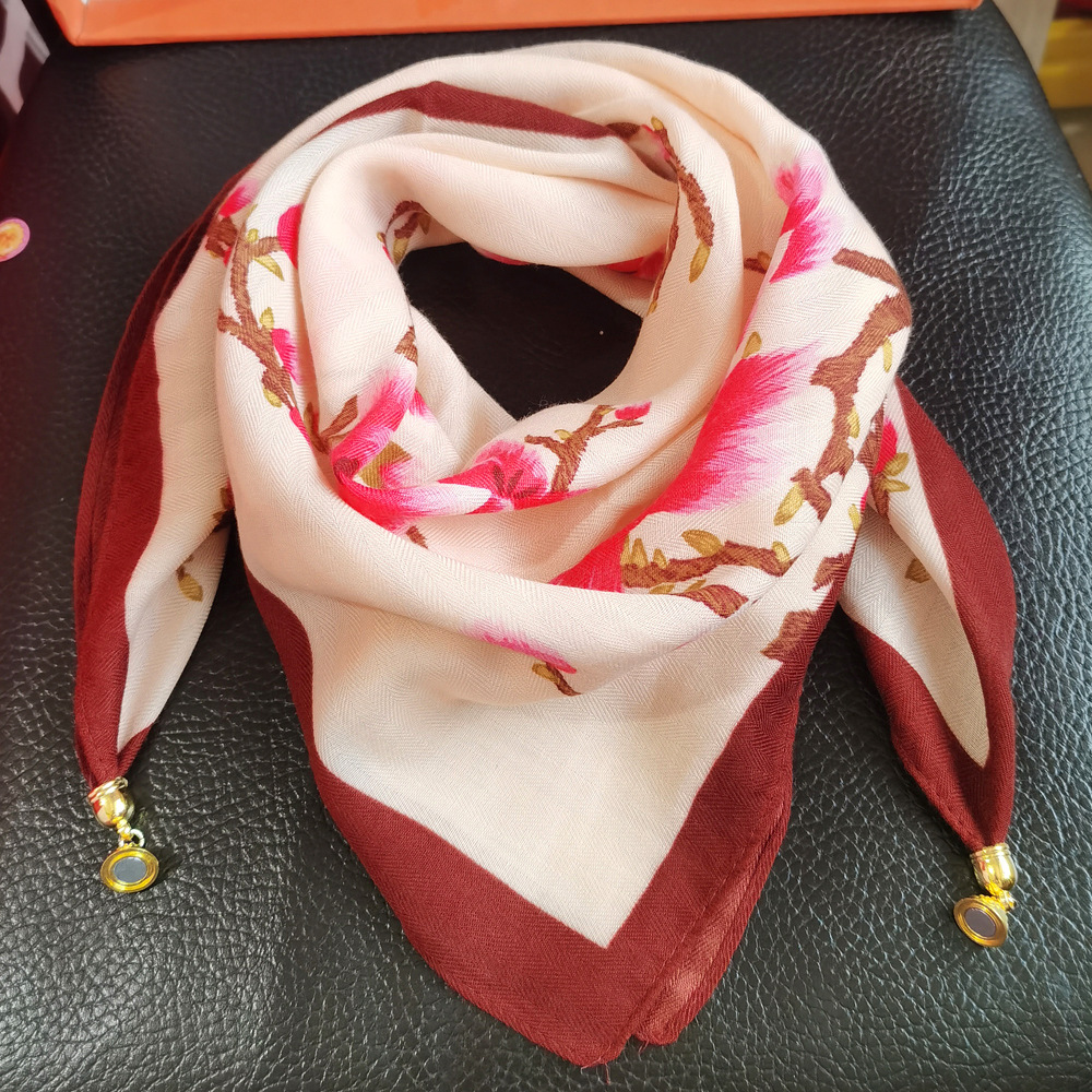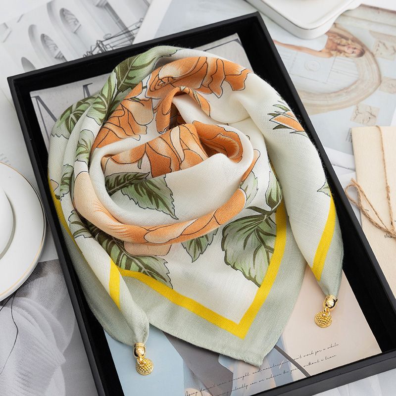 마그네틱 버클 코튼 리넨 작은 스퀘어 스카프 여성의 다기능 봄과 가을 올 매치 하이 엔드 넥 보호 작은 스카프 게으른 스카프스토어 가기