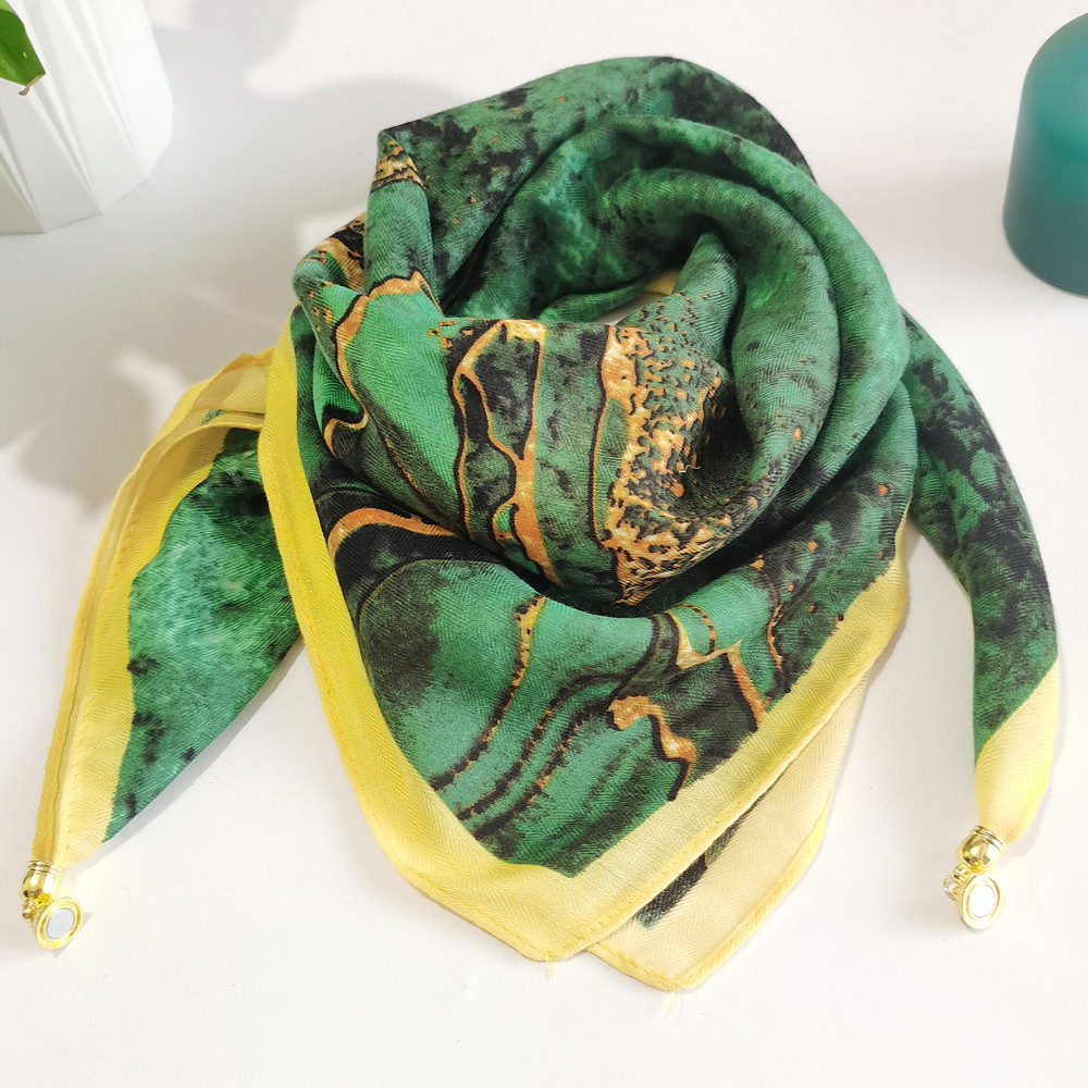 마그네틱 버클 코튼 리넨 작은 스퀘어 스카프 여성의 다기능 봄과 가을 올 매치 하이 엔드 넥 보호 작은 스카프 게으른 스카프