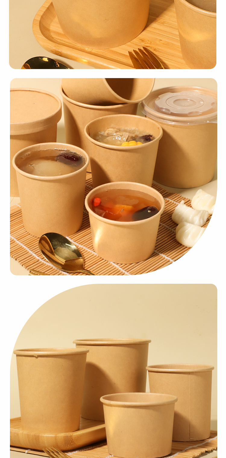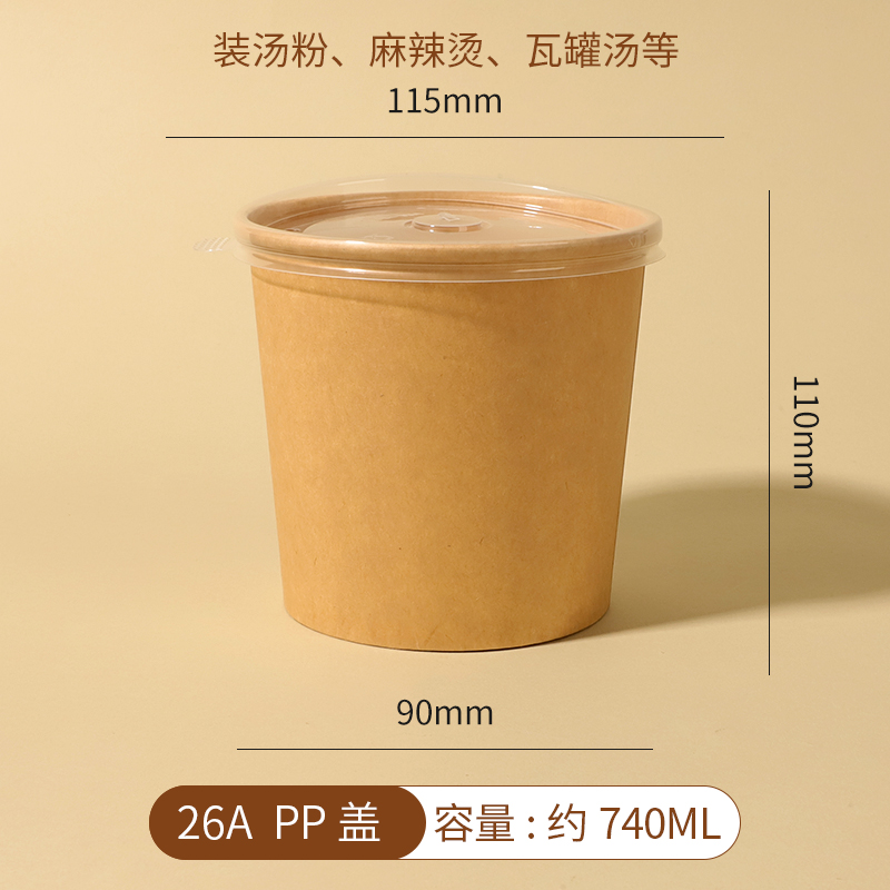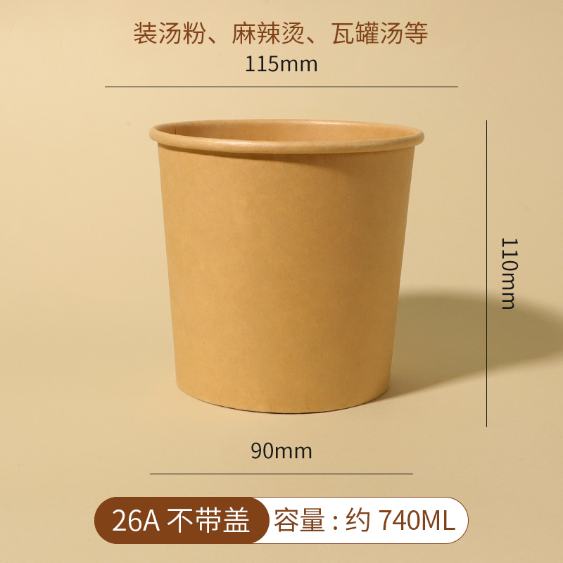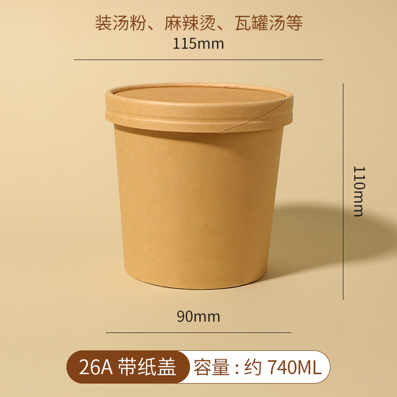 얇게 구운 배 수프 컵 죽 그릇 패키지 상자 상업용 테이크 아웃 종이 그릇 도시락 상자를 가진 일회용 크래프트 종이 수프 양동이