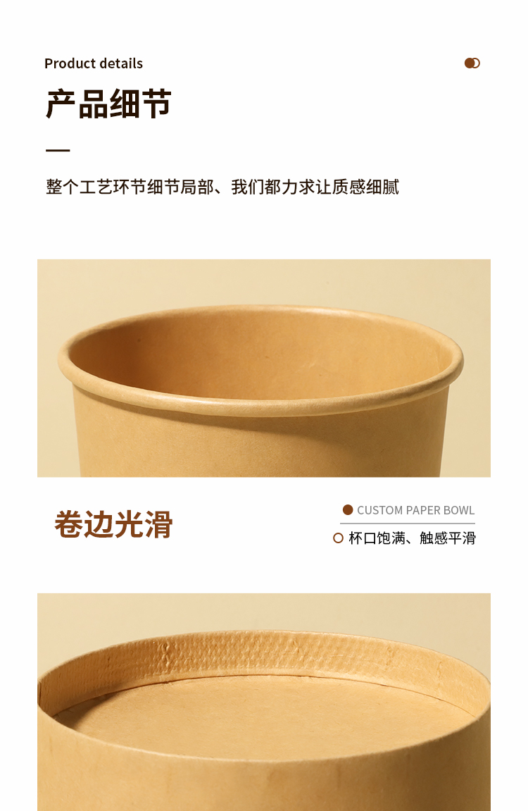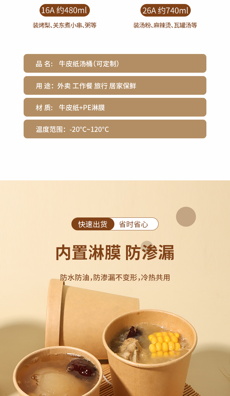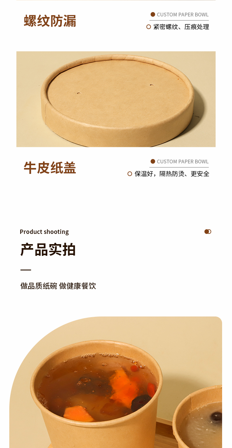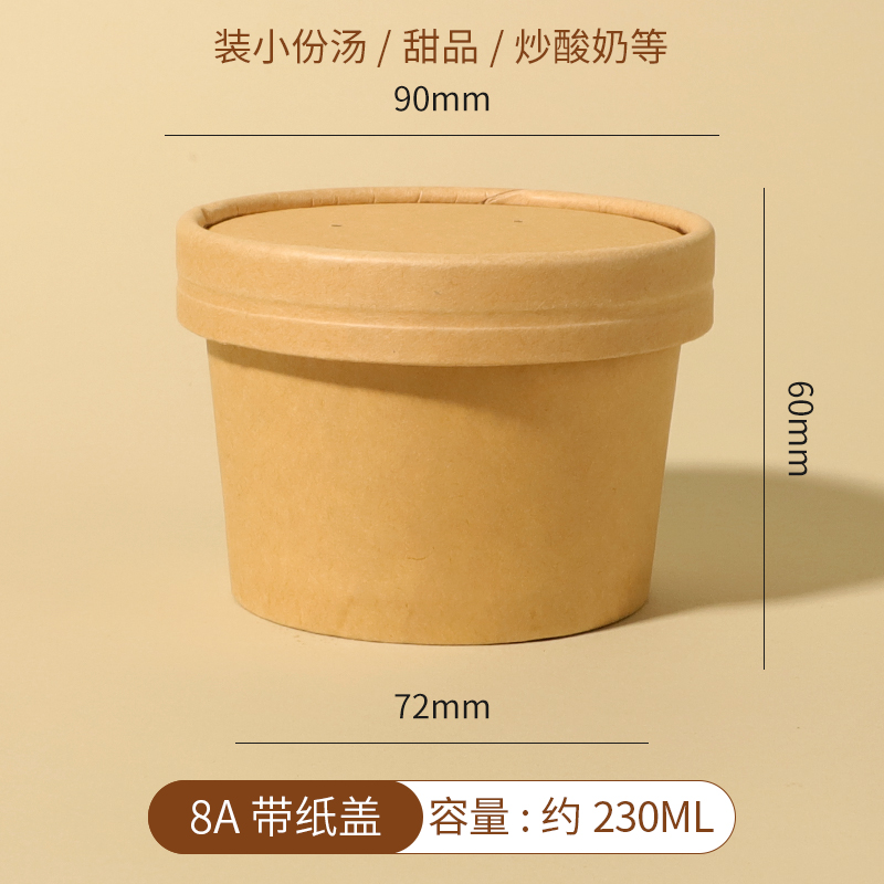 얇게 구운 배 수프 컵 죽 그릇 패키지 상자 상업용 테이크 아웃 종이 그릇 도시락 상자를 가진 일회용 크래프트 종이 수프 양동이