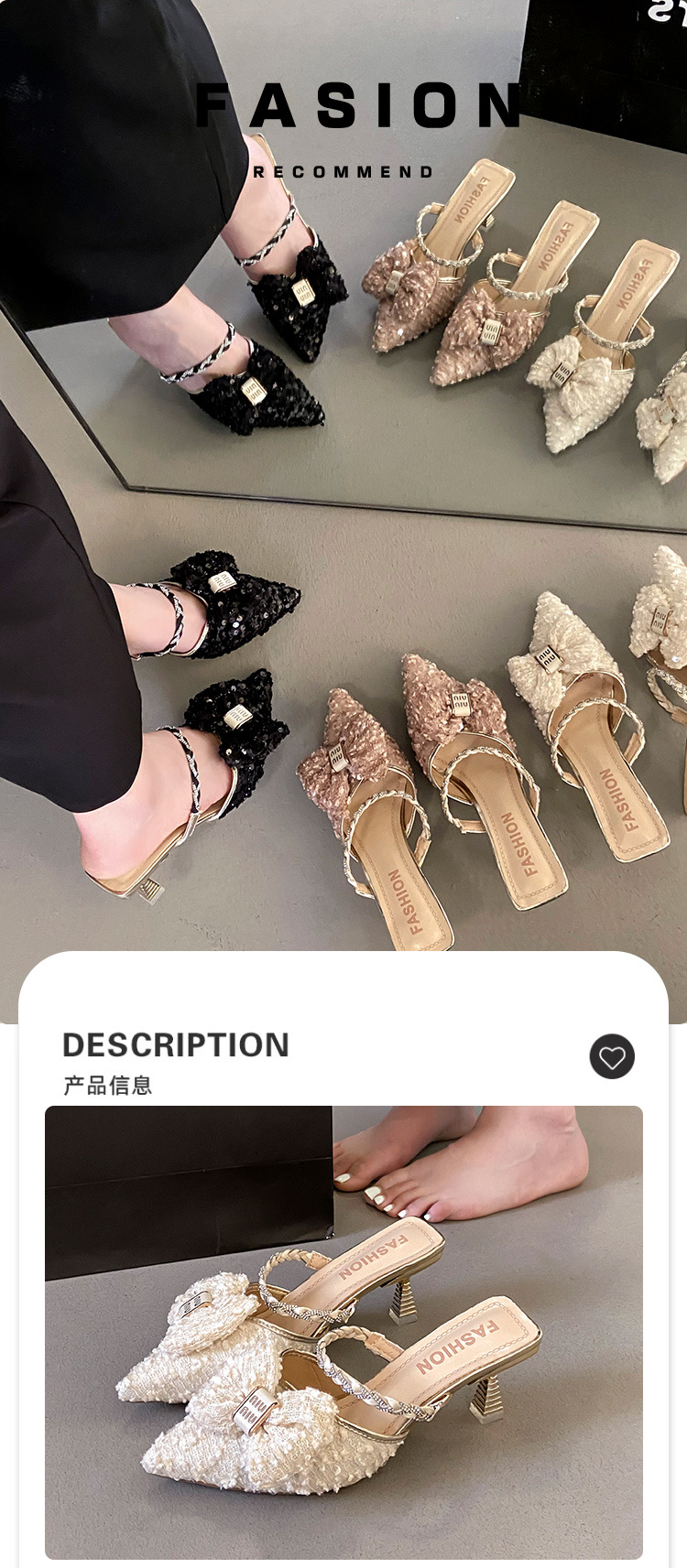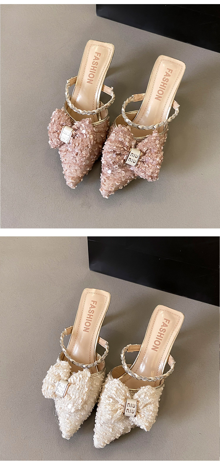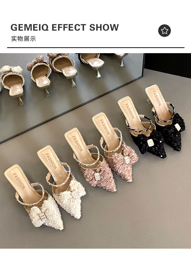 봄과 여름 2025 새로운 뾰족한 뜨거운 프랑스 반 슬리퍼 여성의 우아한 진주 얇은 발 뒤꿈치 Baotou Mueller 샌들