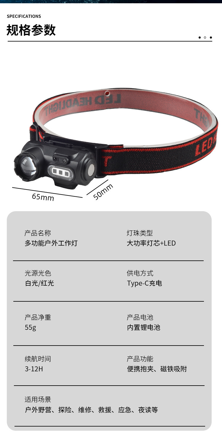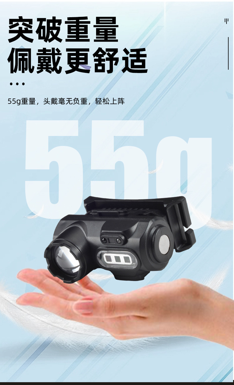 内置400mah锂电池,任意档位长按3秒进入挥手感应模式,带强磁可拆卸