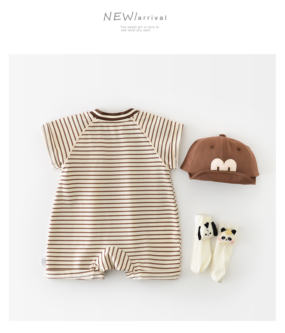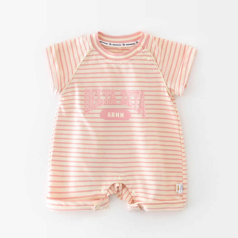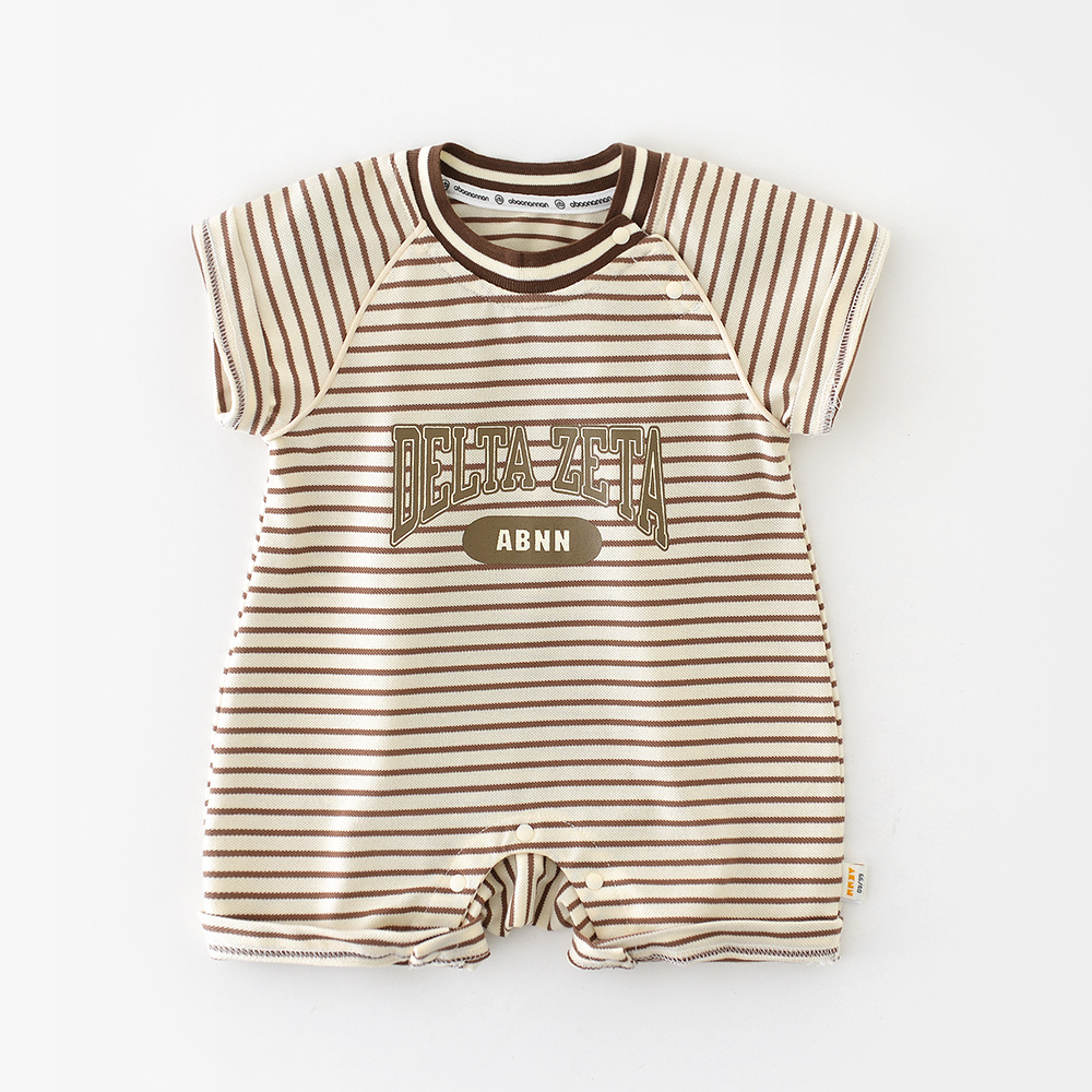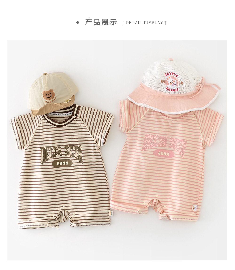 2025 년 여름 어린이 한국식 줄무늬 편지 점프 수트 아기 유아 0-3 세 아기 반팔 등반 52756
