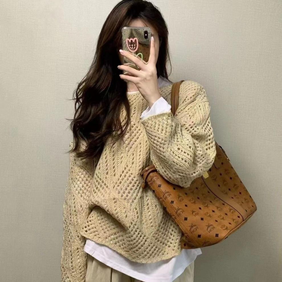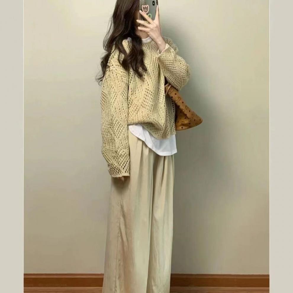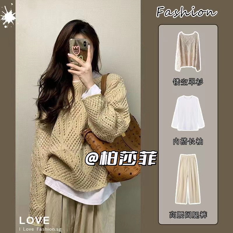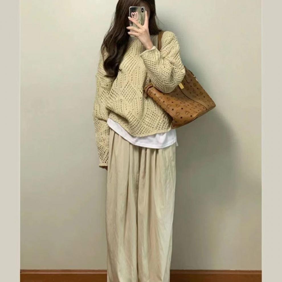 Maillard 세트 여성의 2025 가을 새로운 게으른 스타일 할로우 블라우스 니트 와이드스토어 가기