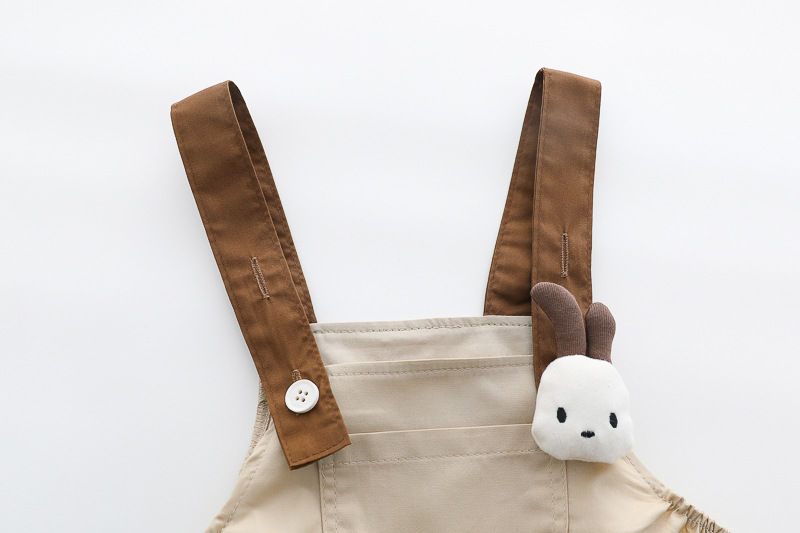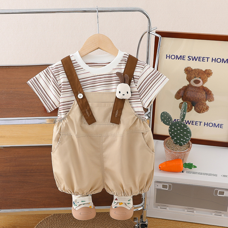 남자 아기 2024 새로운 귀여운 캐주얼 얇은 여름 세트 아기 어린이 멋진 인형 토끼 스트랩 짧은 소매스토어 가기