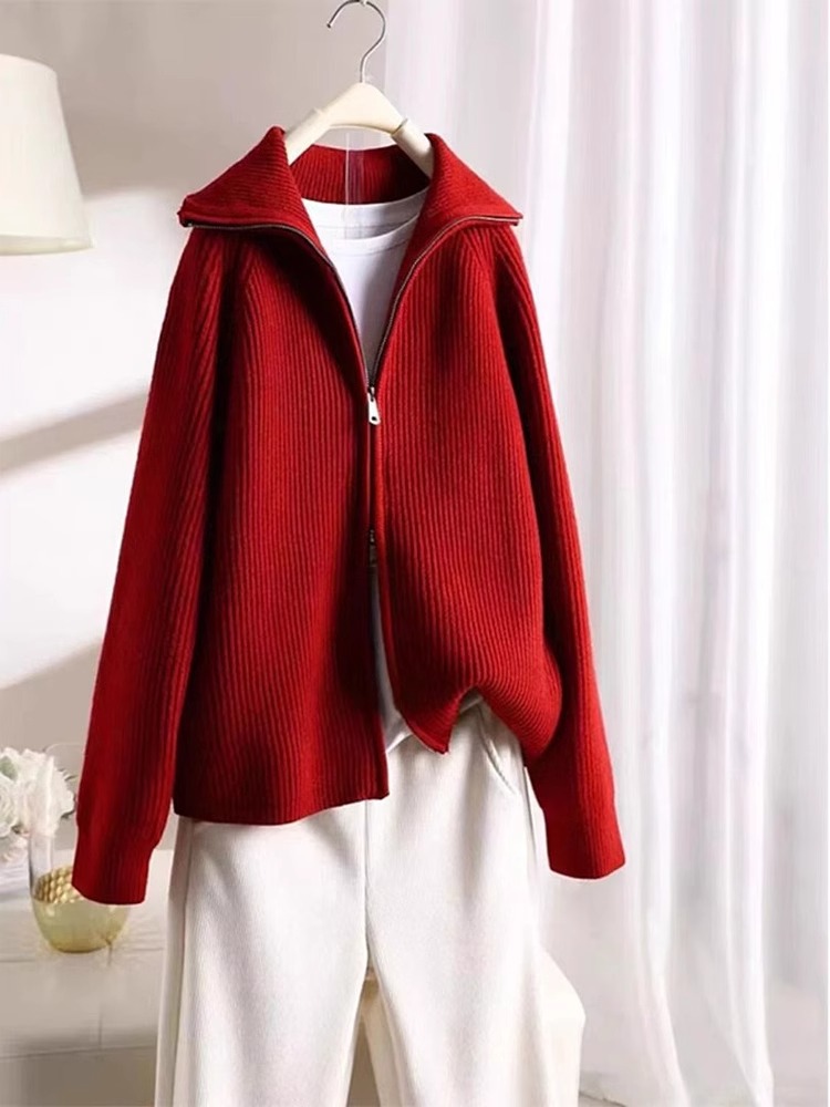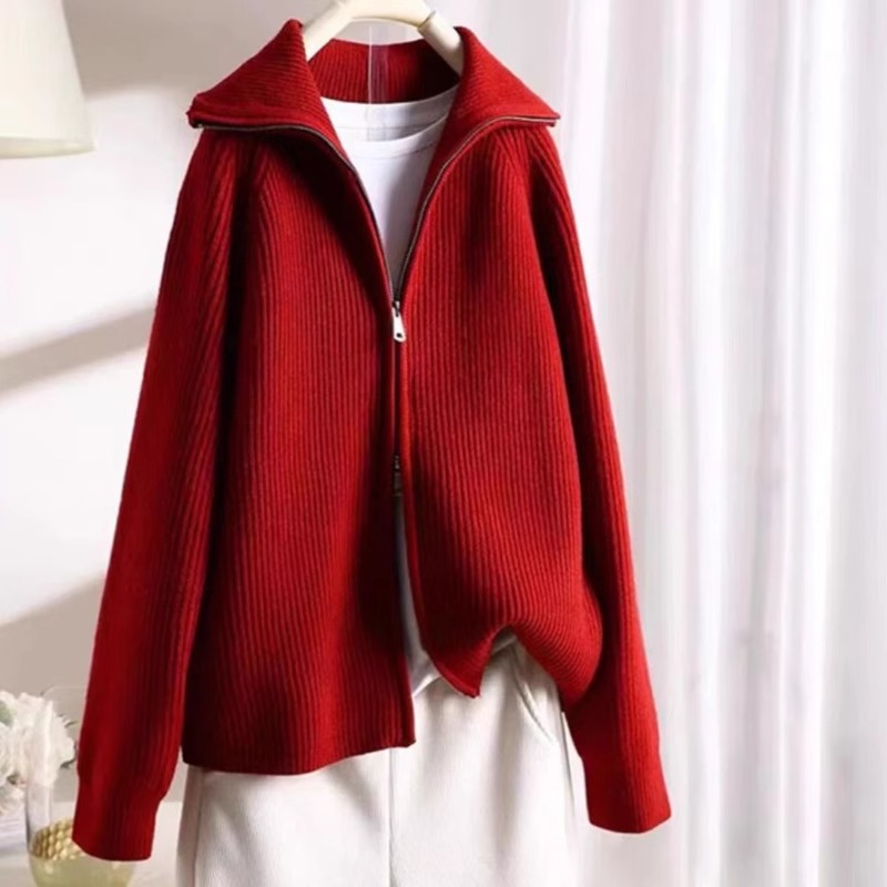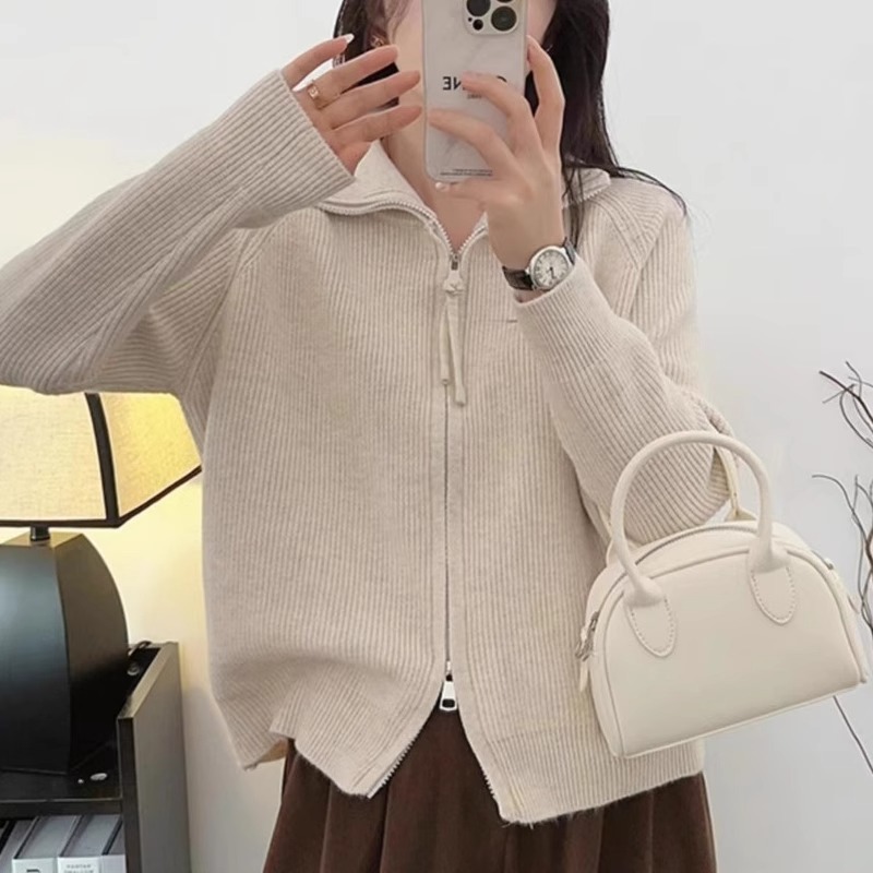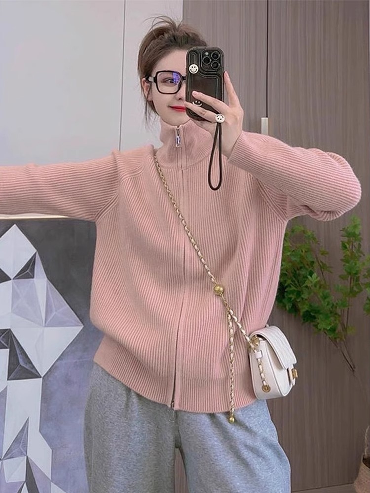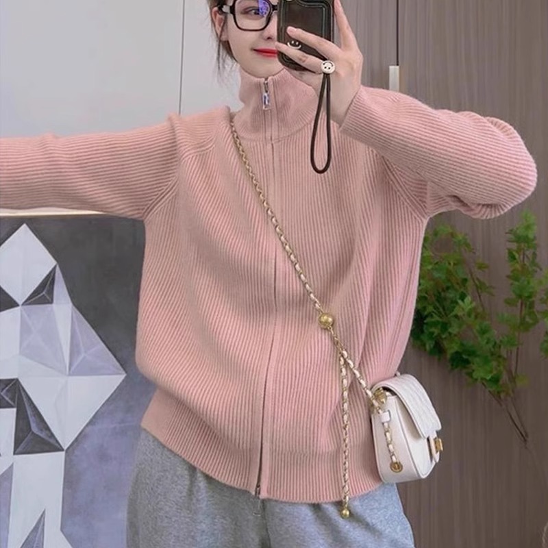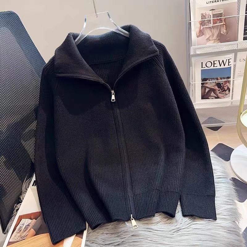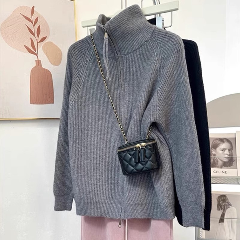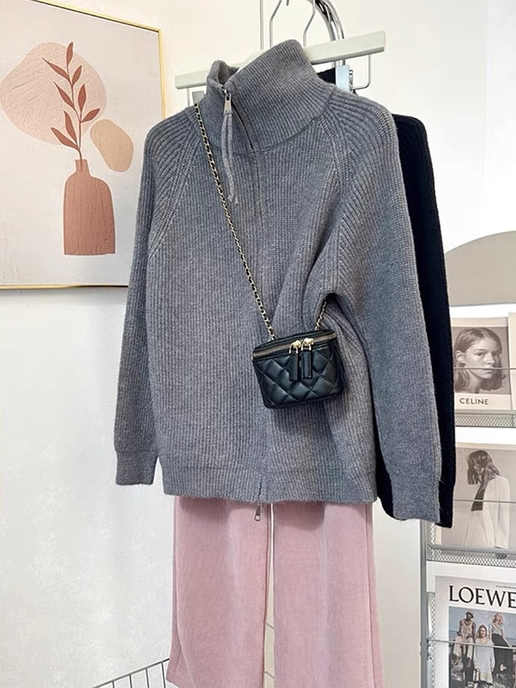 하프 터틀넥 지퍼 게으른 스타일 스웨터 코트 여성의 가을과 겨울 2024 새로운 디자인 니트 카디건 탑스토어 가기