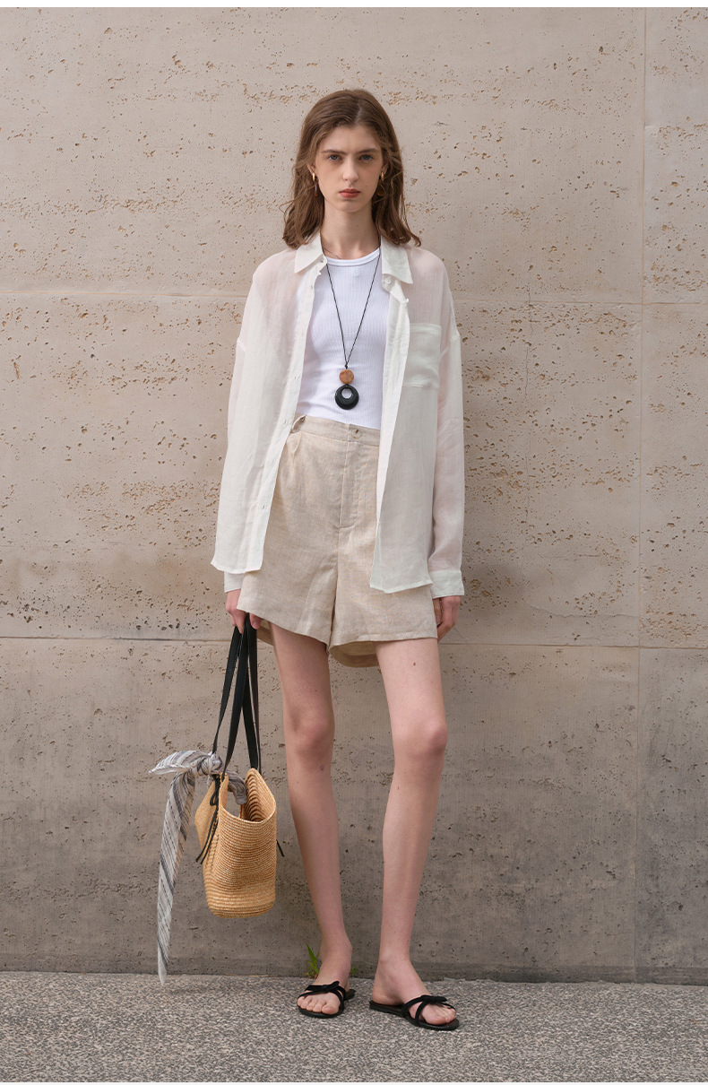 순수 모시 셔츠 고급 여성용 2026 봄 여름 프렌치 스타일 자외선 차단 셔츠 루즈핏 카디건 라펠 긴팔 얇은 셔츠스토어 가기