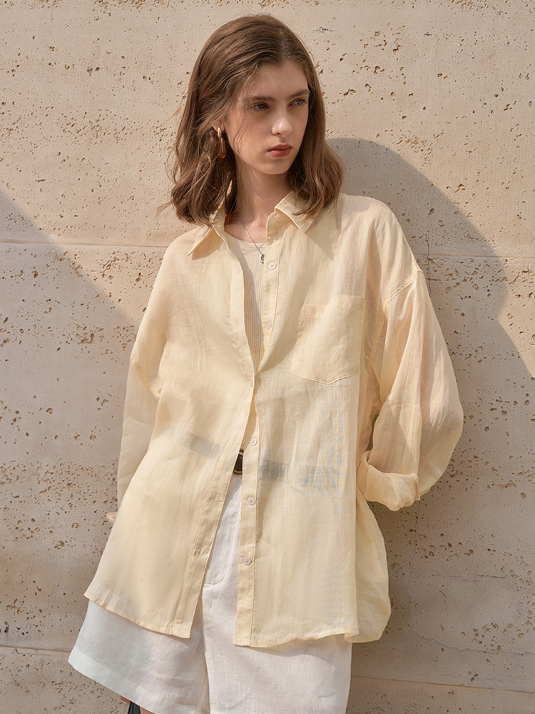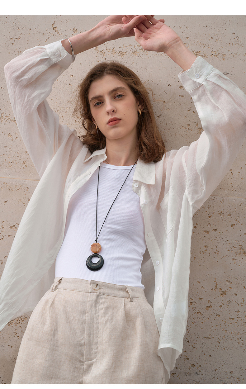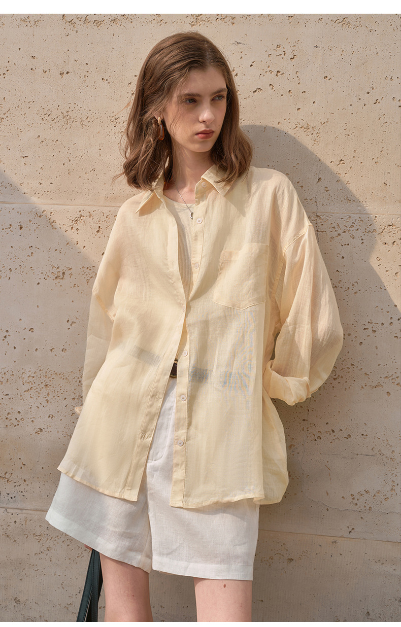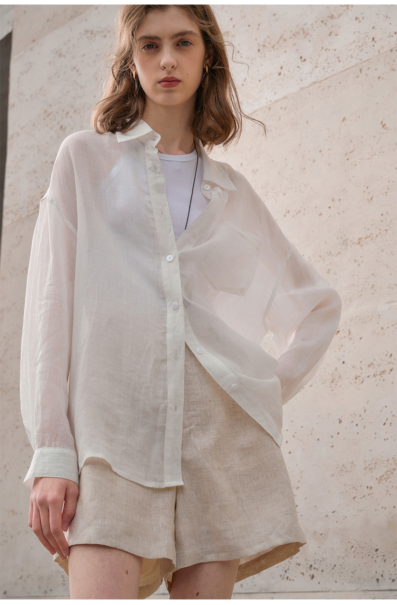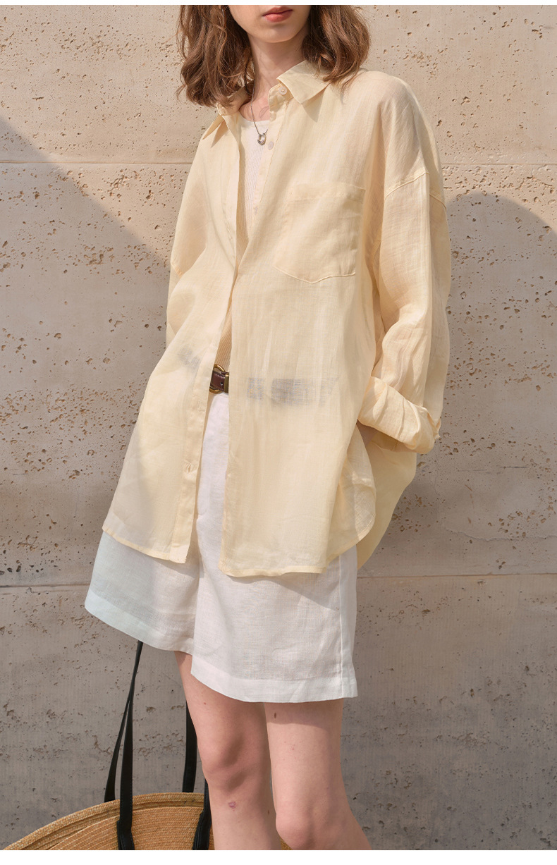 순수 모시 셔츠 고급 여성용 2026 봄 여름 프렌치 스타일 자외선 차단 셔츠 루즈핏 카디건 라펠 긴팔 얇은 셔츠
