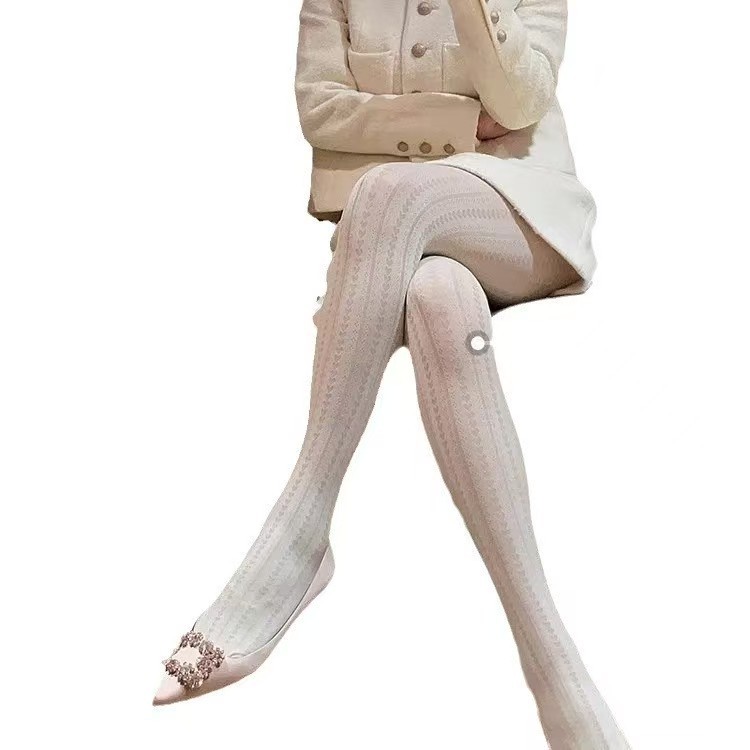 이른 봄 새로운 프랑스 스타일 레트로 사랑 자카드 스트레치 팬티 스타킹 슬리밍베이스 양말 밀크 화이트 향기로운 스타일 일본 스타일스토어 가기