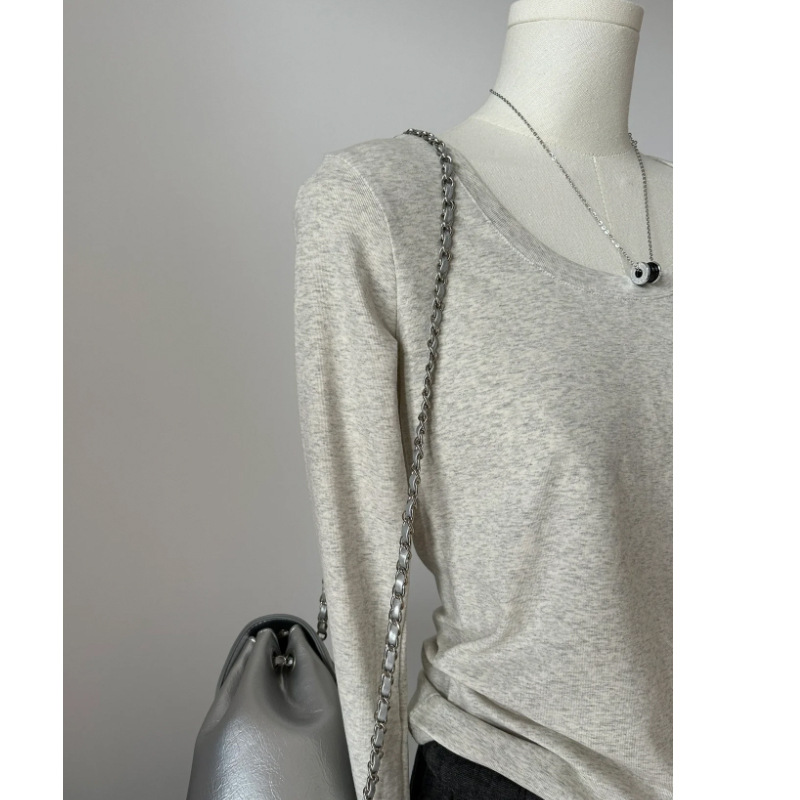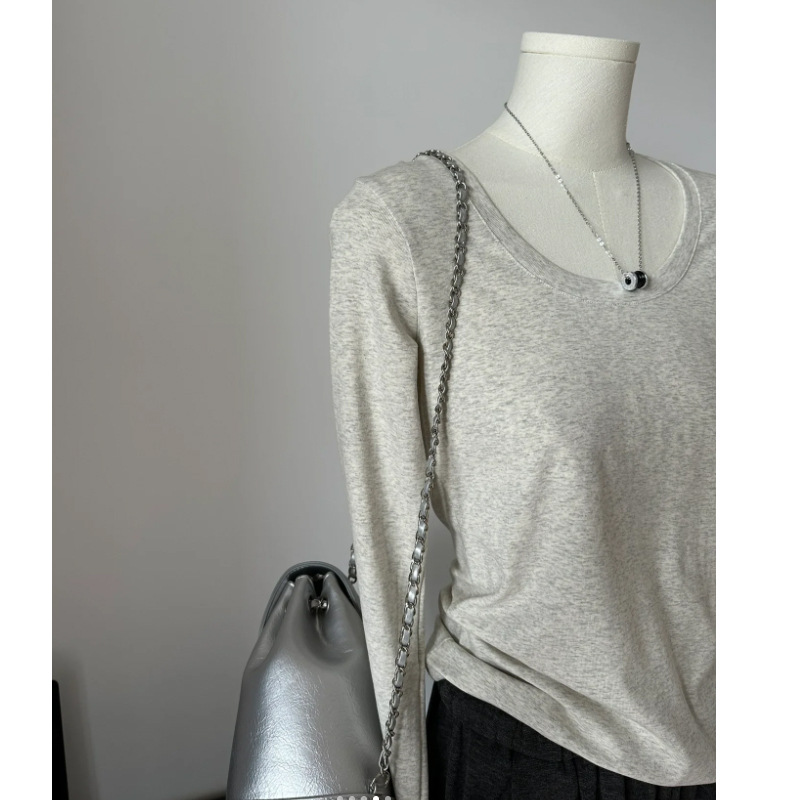 흰색 긴 소매 티셔츠 여성의 가을과 겨울 2025 새로운 유럽 용품 슬리밍 꽃 회색 둥근 목 내부 폭발 새로운 머리 새로운스토어 가기