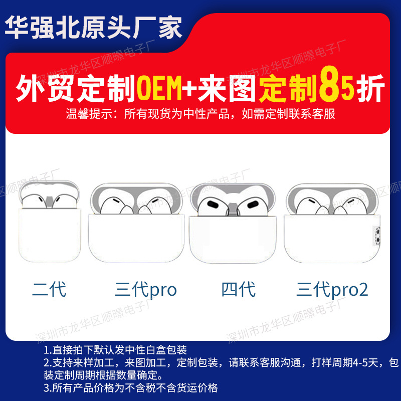 Apple 무선 블루투스 헤드셋 Huaqiangbei 2, 3, 4, 5, 6, 7세대 Pro2 소음 감소 TWS 국경 간 도매에 적합스토어 가기