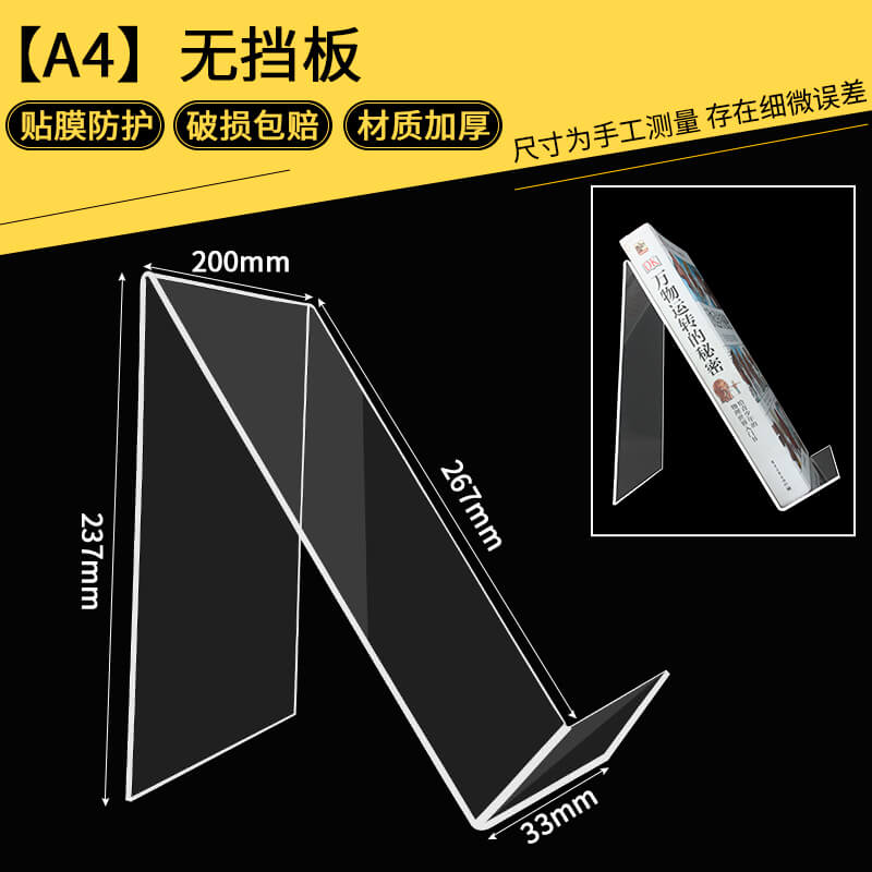 아크릴 책 스탠드 데스크탑 투명 책장 디스플레이 랙 독서 랙 a4 북엔드 홀더 Baffle Ins 저장스토어 가기